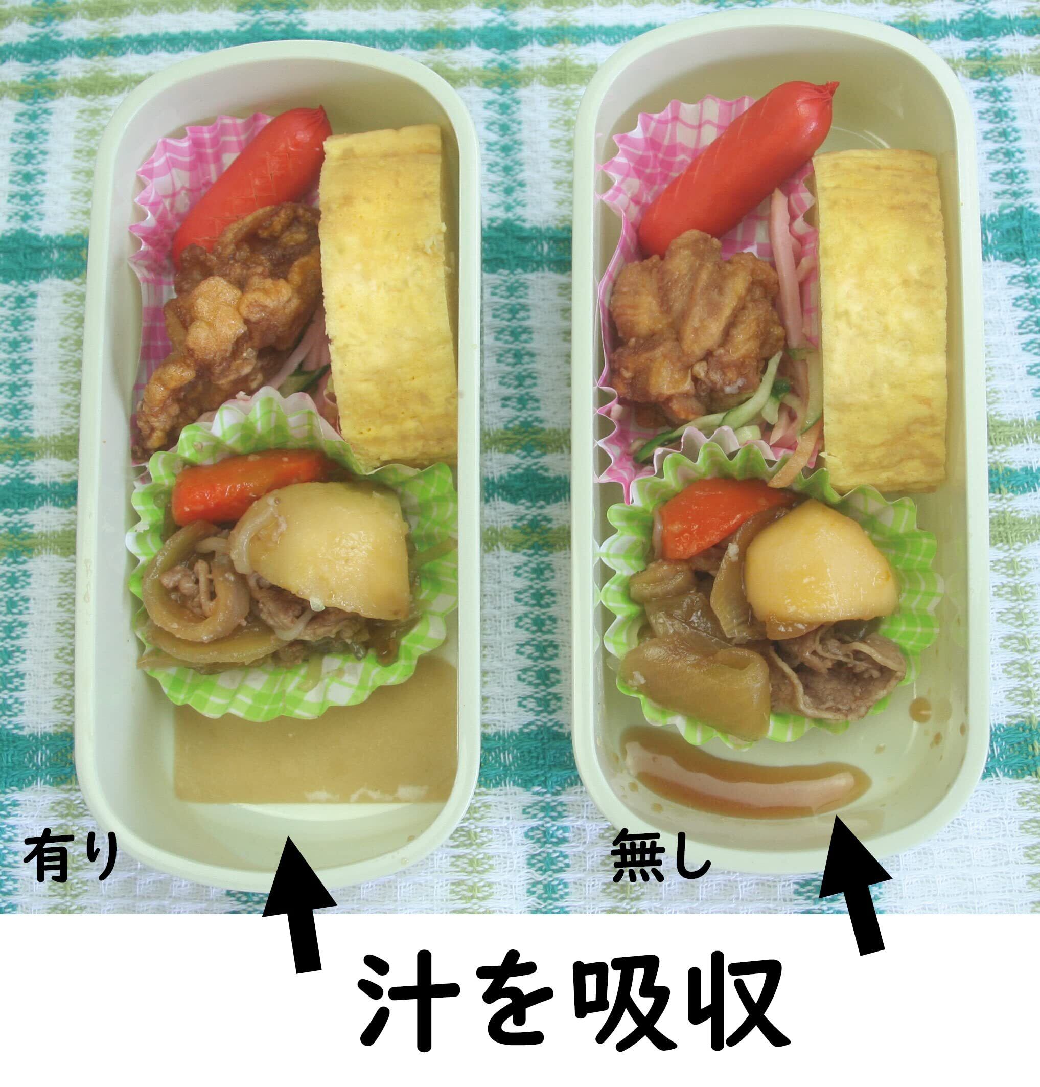 吸収した汁(水分)・油分と食材を離し、スペース層での食材のベタツキを抑制します。