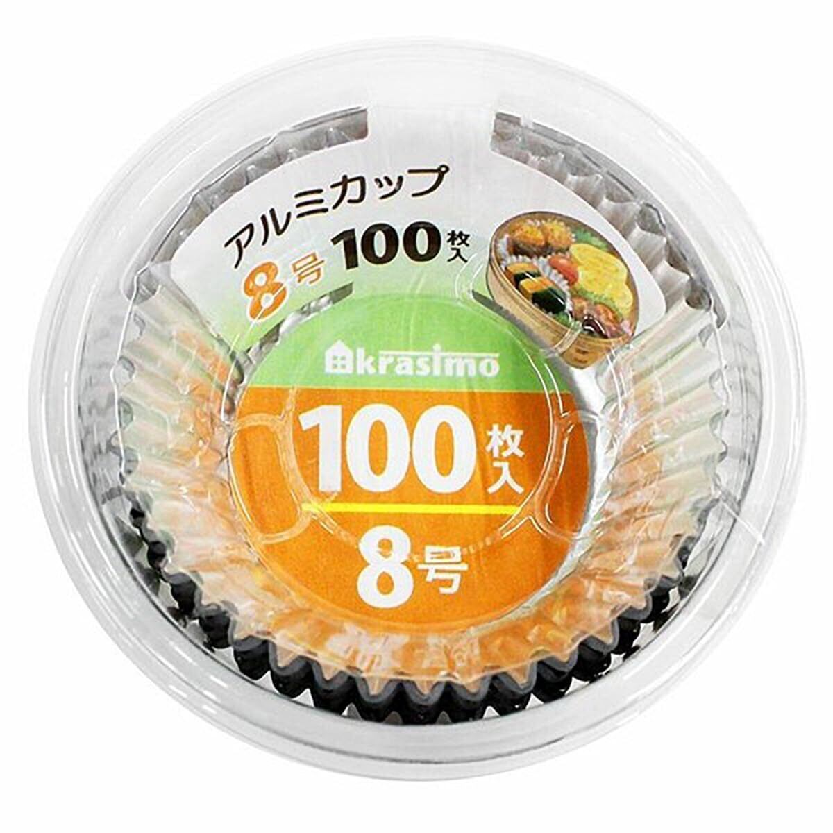 パッケージ内容: アルミカップ8号 100枚入り、使い捨てタイプの食品用カップ