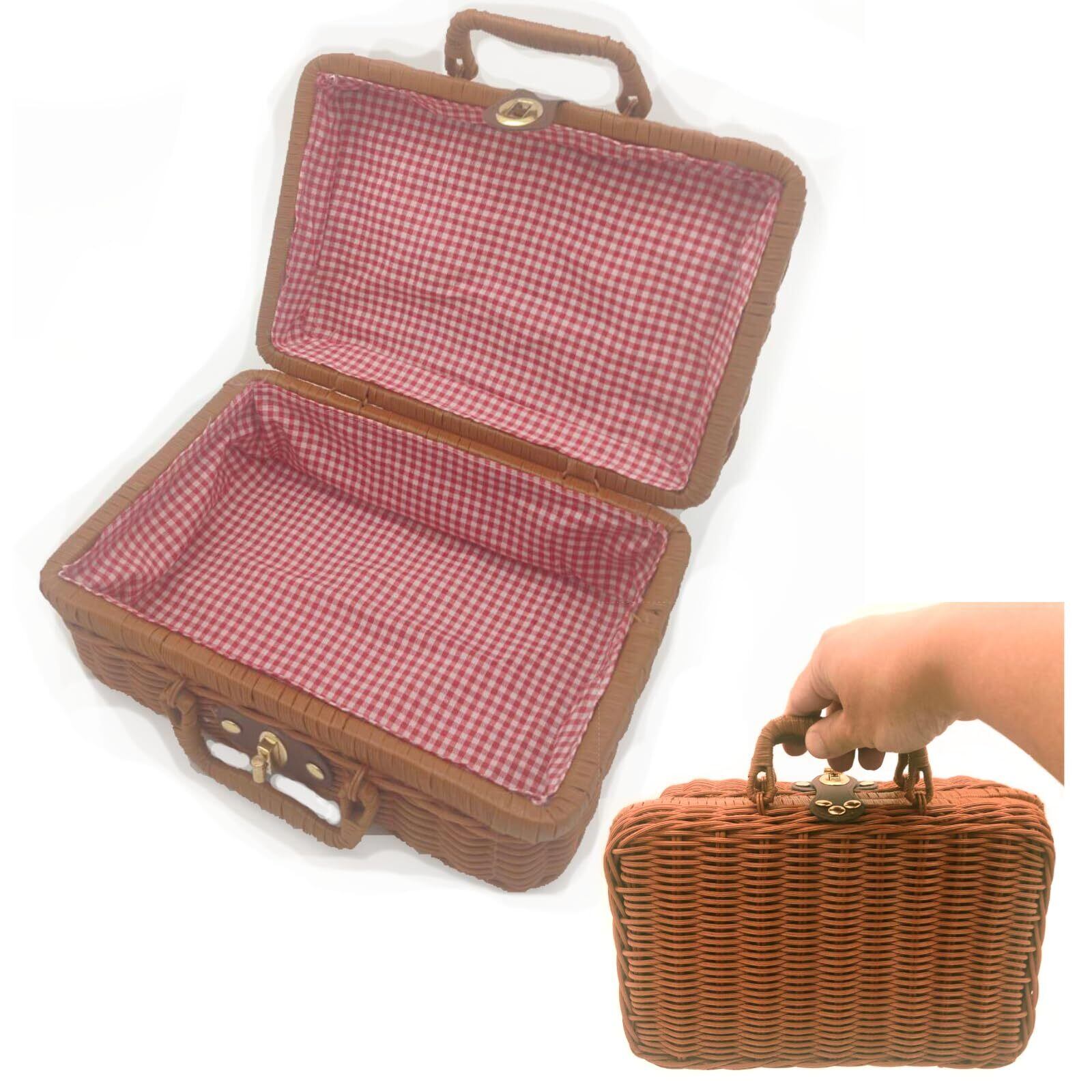 【商品仕様】商品内容:ピクニックバスケット1個。サイズ:幅約26cm、縦約18cm、高さ約11cm。重量360g。モニターなど環境により画像と若干見え方が違う場合がございます。