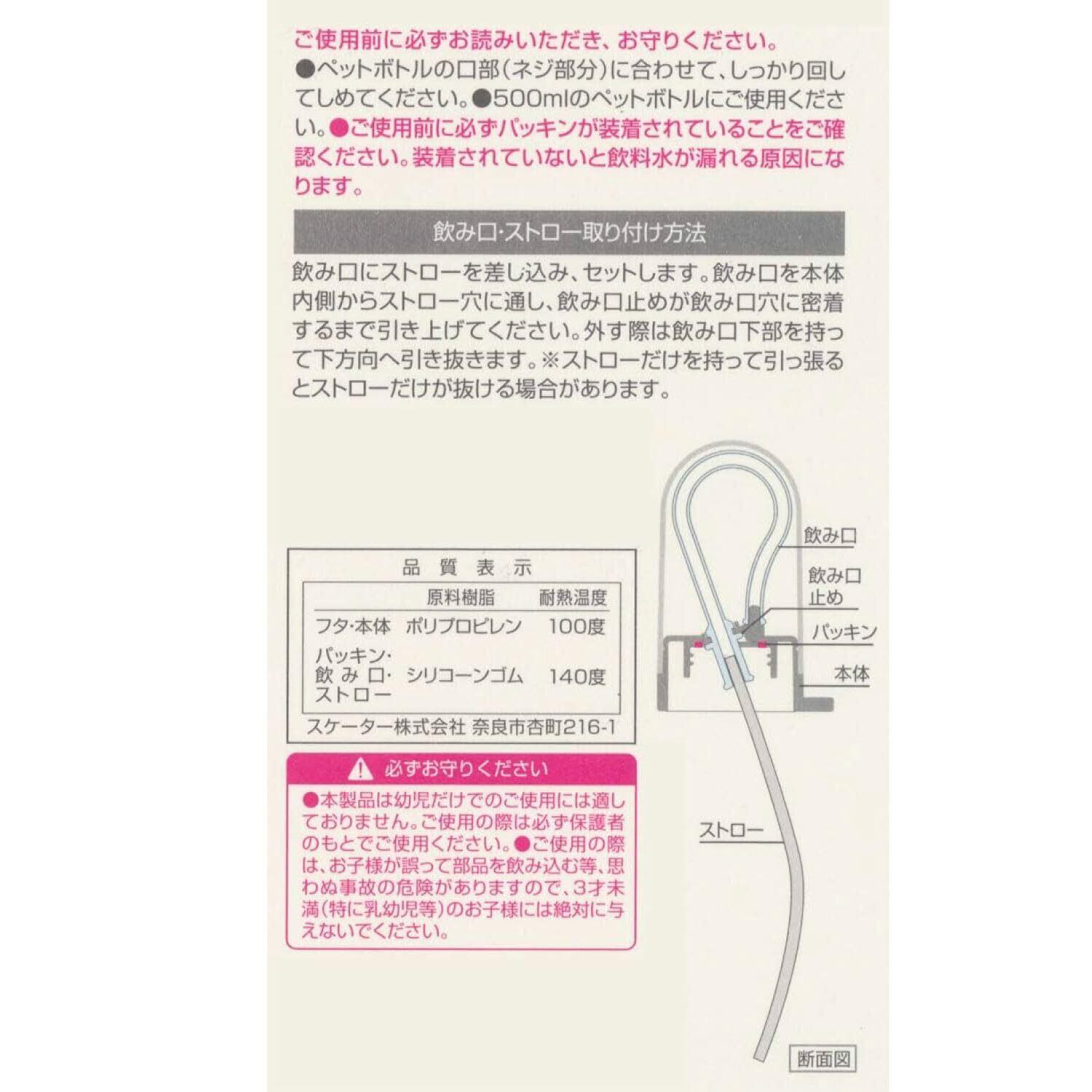 スケーター(Skater) ペットボトル ロングストロー 寝たままで飲みやすい 500ml用 フタ付 PSHC10-A