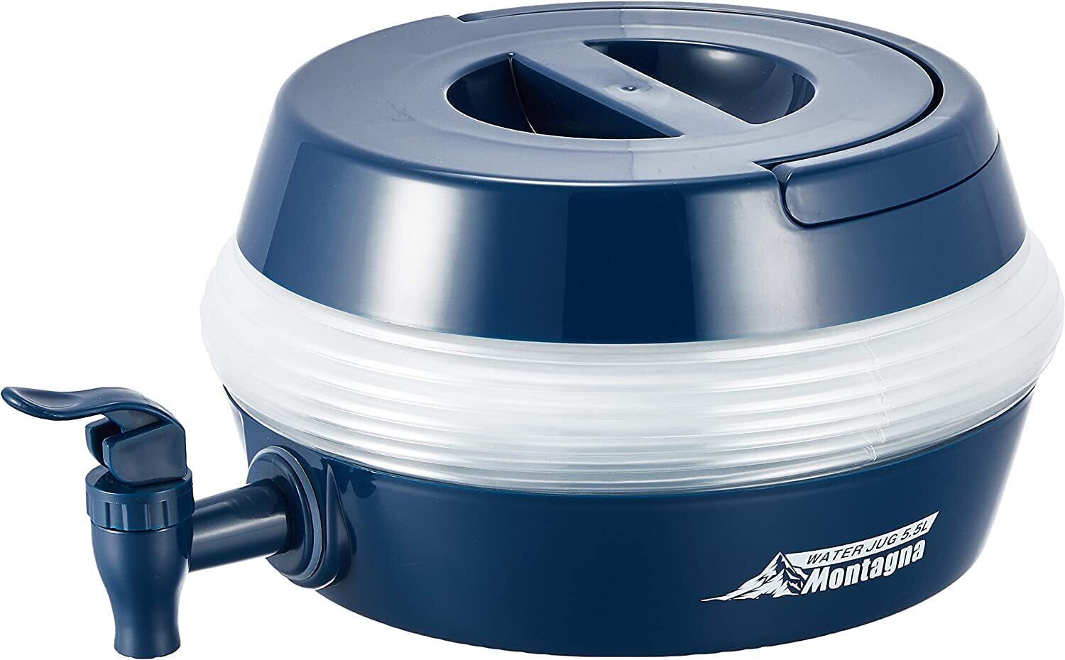 折りたたみ式でコンパクトに持ち運びが可能。大容量5.5Lなのでファミリーや複数人でもシェアできます。コック式で簡単に注水/止水の切り替えができます。