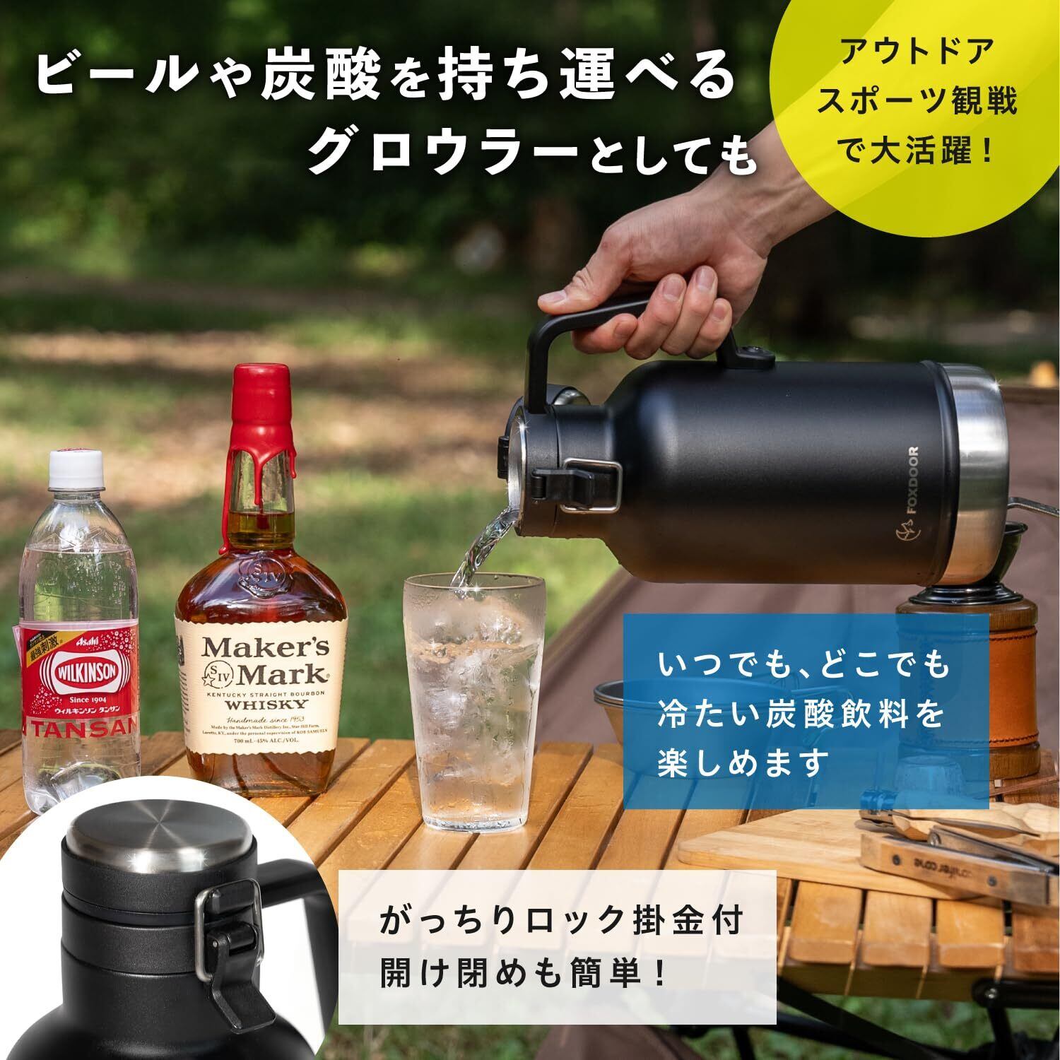 アイスジャグ 氷 溶けない 水筒 グロウラー 炭酸 1.9L 大容量 氷入れ 保冷 スポーツ アウトドア キャンプ 炭酸対応 ビール 持ち運び ステンレス (ブラック_1.9L ジャグ)