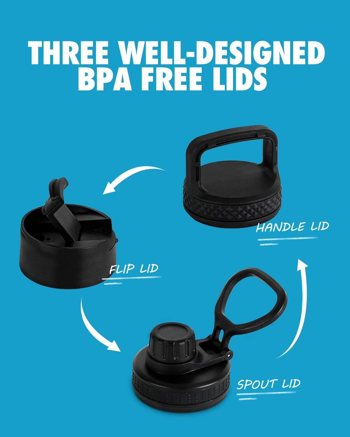 HUMIGO 3種の機能性蓋付き ステンレス製真空断熱ボトル 650ml スポーツボトル 保温・保冷対応 スポーツ&日常用 防漏設計