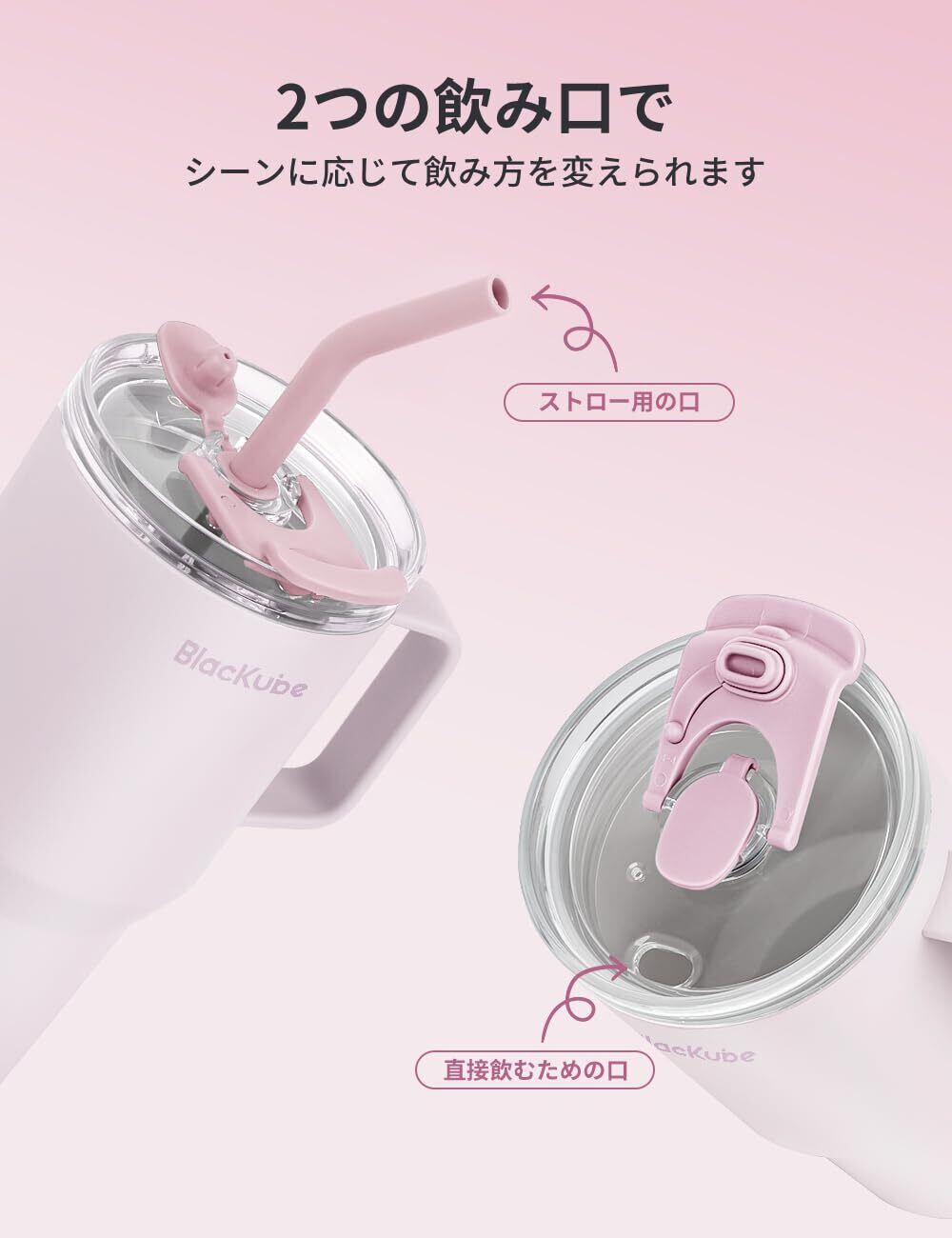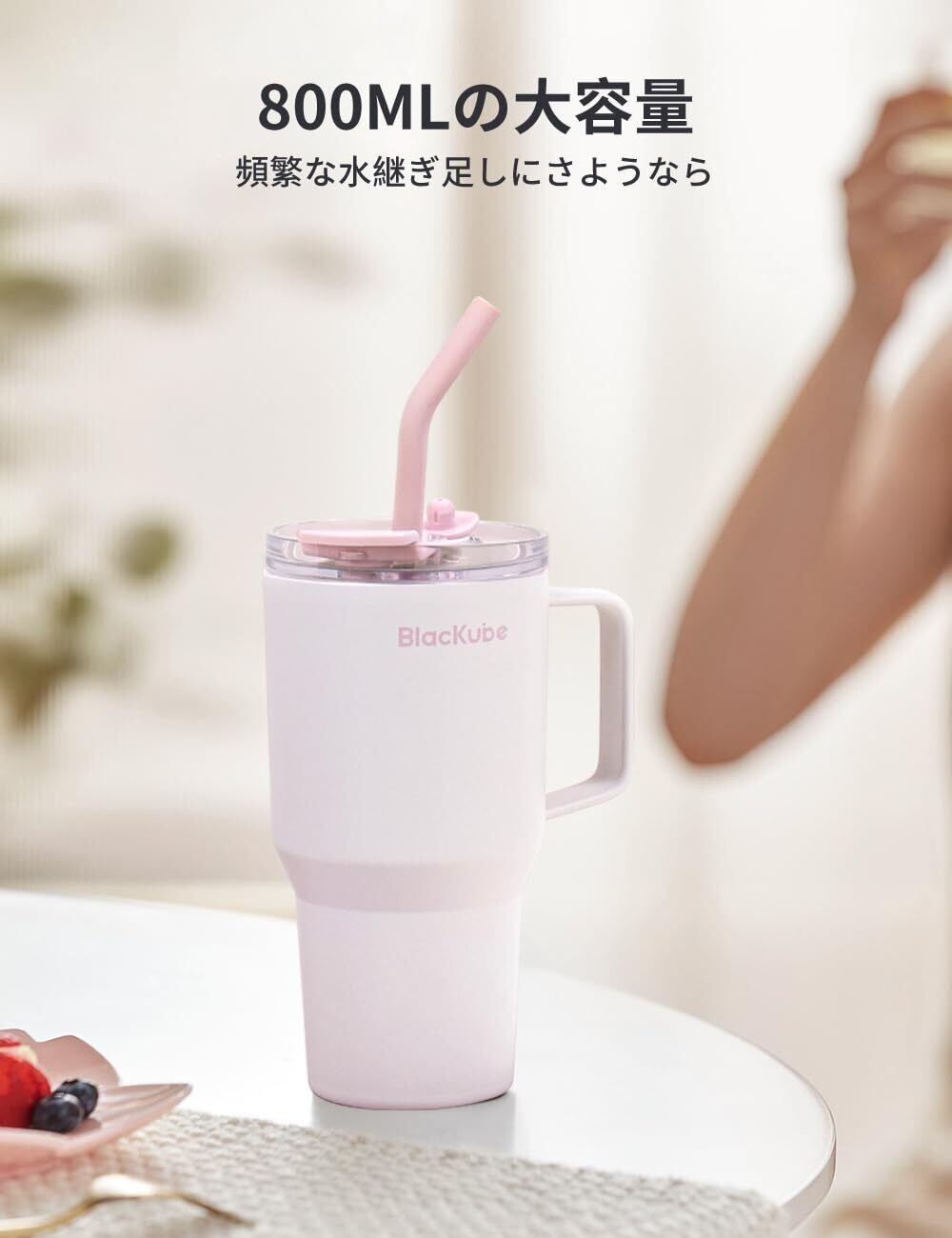Blackube セラミック タンブラー ストロー付き 取っ手付ケトル 800ml コーヒー 真空クエンチャー 保温保冷 真空断熱広口 大容量 直飲み ホームオフィ アウトドア 女の子 男の子 シナモンピンク