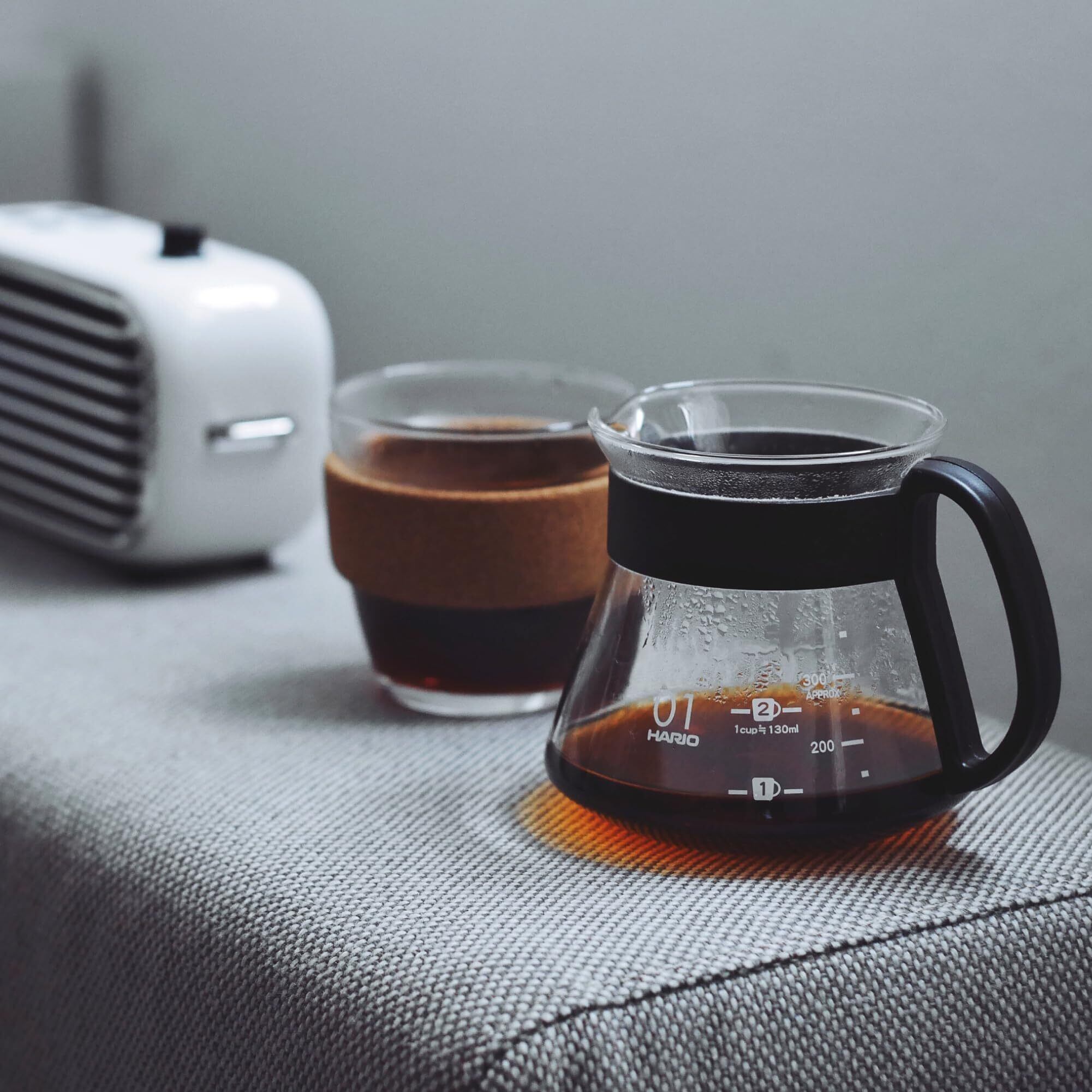 コーヒーのドリップに使いやすいシンプルな見た目。広口で洗いやすく、使いやすさにこだわったポットです。容量は600mL、2~5杯用なので、コーヒーを少人数にふるまったり、何回かにわけて楽しみたいときにちょうど良いサイズです。mL表示に加えて、コーヒーのおおよその杯数目安がプリントされているので、メモリを見ながら抽出できます。本体は耐熱ガラス製なので、淹れて時間が経ってしまったコーヒーを電子レンジで温め直すこともできます。