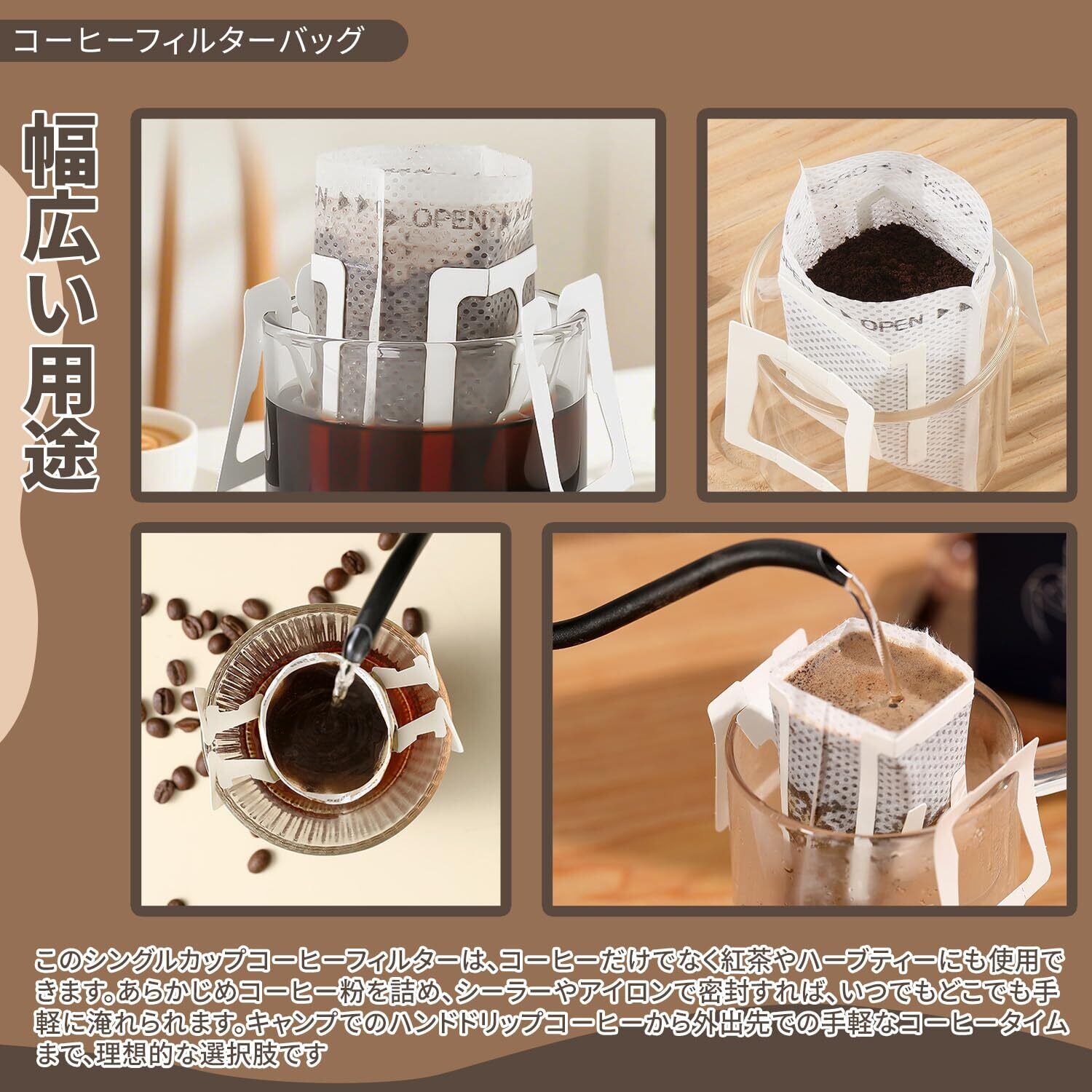 コーヒーフィルター 1杯用 100枚 吊り耳ドリップ袋 ポータブル 手作りコーヒー用 バッグ型 ペーパーフィルター お一人様 旅行先 オフィス 業務用 家庭用