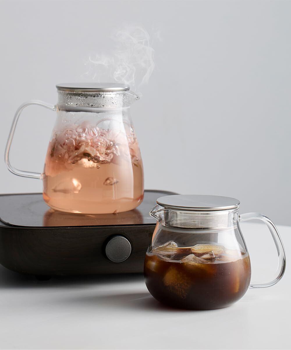 注ぎ口の形が秀逸で、液だれしにくい⇒透明度の高いガラスで茶葉の動きや色の出具合がクリアに見えます。液だれしにくい注ぎ口で、ティーカップ3杯分ほどの量を一度に作れます。茶こしを外せば電子レンジでも使えます。※ ガラス製品などには、製造上どうしてもできてしまう突起、小さな傷や気泡が見られる場合がございます。 ※ 底面に気泡のように見える凹み部分がございますが、ダブルグラスを製造するために必要な凹みですので不良などではございません。