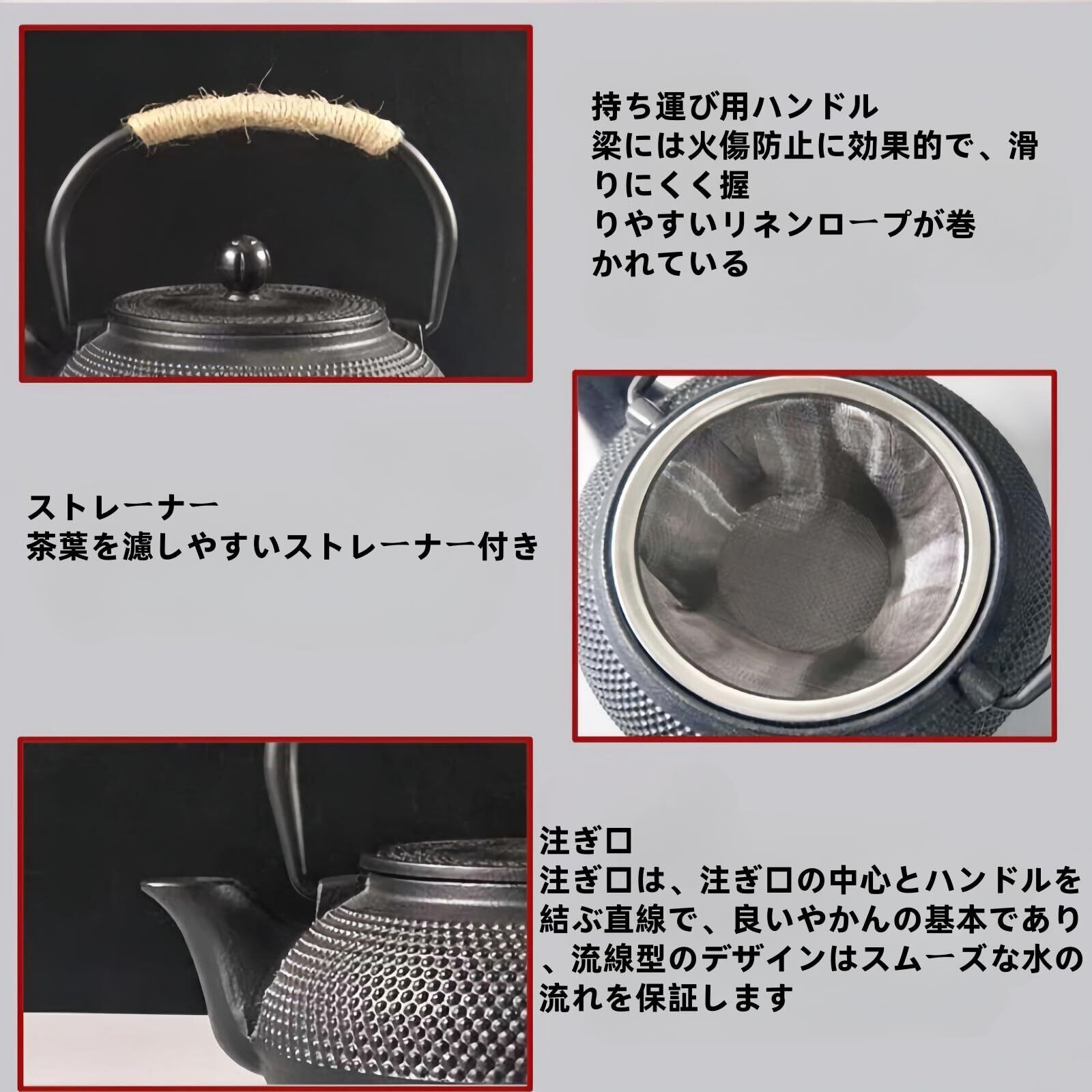 サイズ 材質:鋳鉄;容量:600ML/800ML/1200ML;重量:約1.2KG/1.5KG/1.75;鉄瓶熱源:ガス弱火、直火(中火以下)、電気火、炭