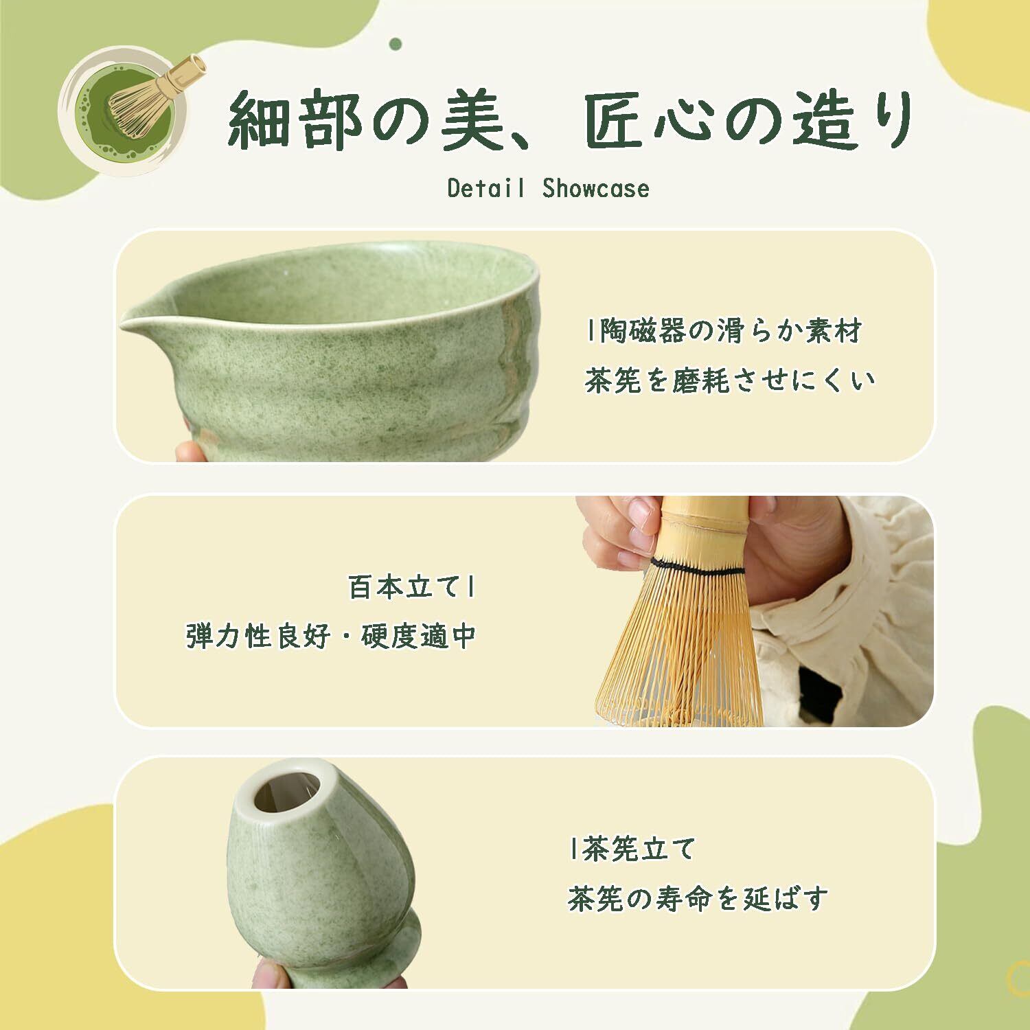 【初心者にも使いやすい設計】 注ぎ口付きの茶碗と安定感ある茶筅立てで、3分でふわふわの泡が立てられる設計。初めての方でも簡単に美しい抹茶を点てられます。