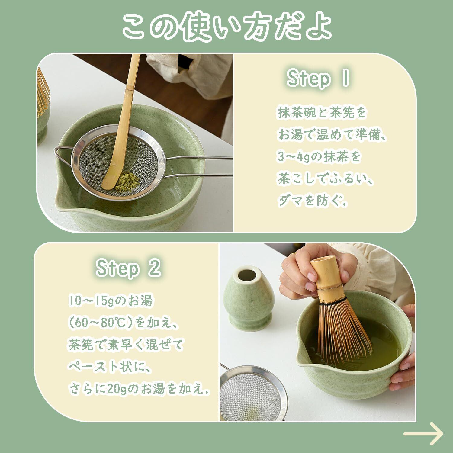 【幅広い用途・多彩なシーンに】 抹茶、抹茶ラテ、デザート作り、お茶会、瞑想タイムなど多用途に活躍。ご自宅やカフェ、茶室など幅広いシーンで使用できます。