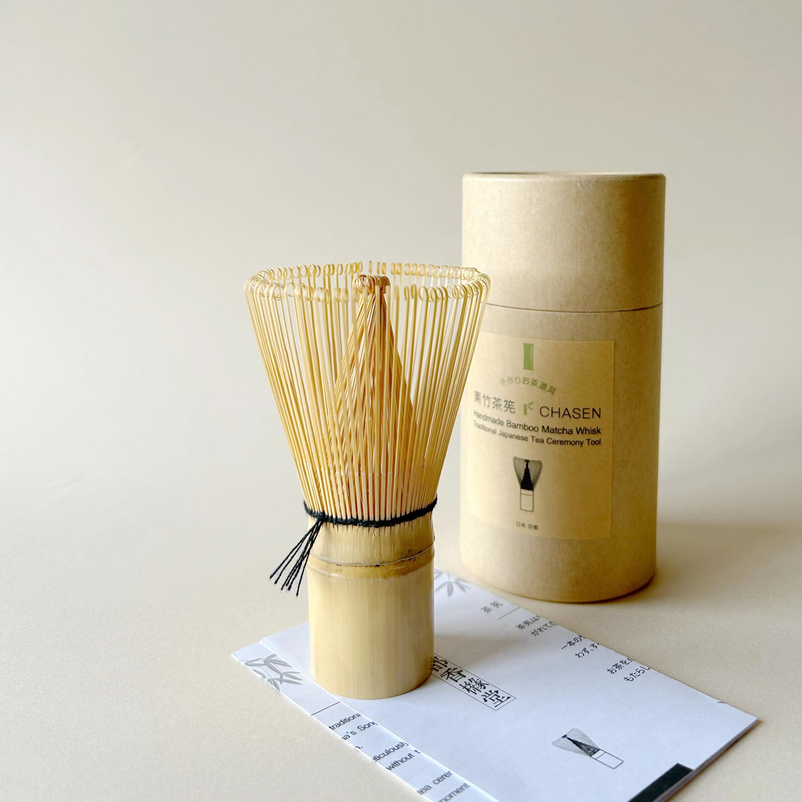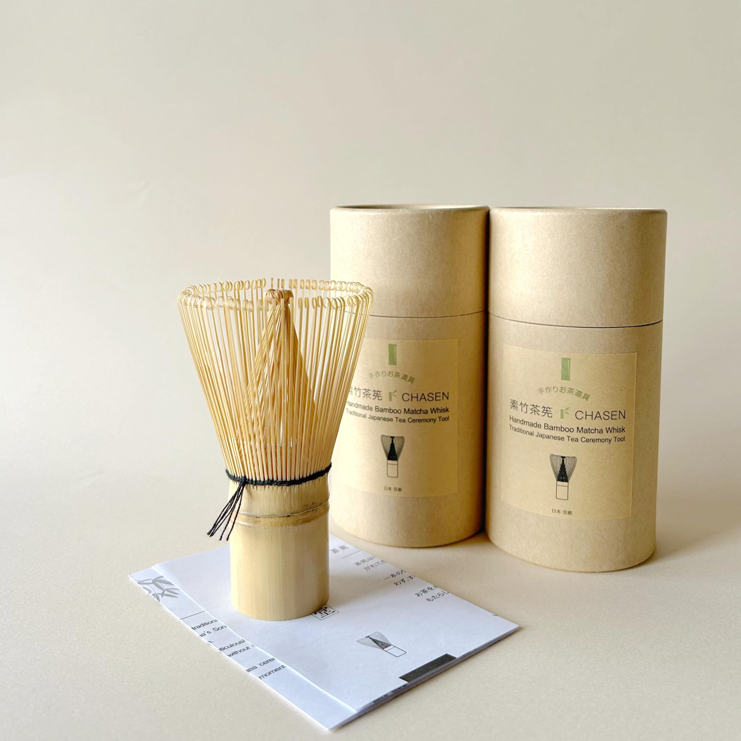 抹茶用 茶筅 素竹 百本立(茶せん/茶筌) 日本製 初心者にも使いやすい 薄茶・濃茶対応 練習用 保護筒付き ギフト包装可 三言語説明書付き 京都香櫞堂