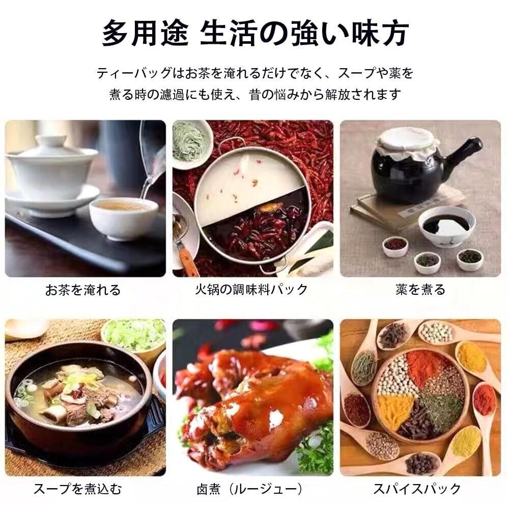5.【使いやすさ】このティーバッグは紐付きで、簡単に閉じたり開けたりでき、細かいメッシュで茶葉や粉末が水に流れ出すことなく安全に保管されます。使用後は簡単に廃棄できます。