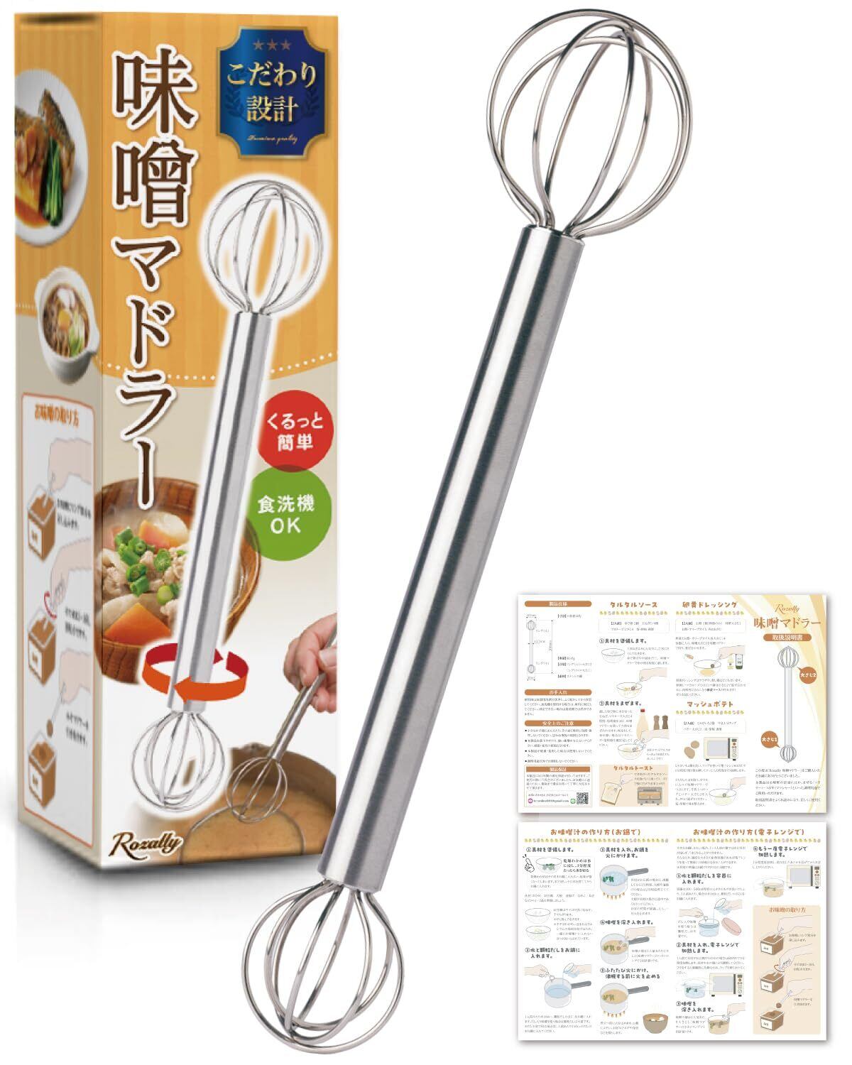 【フルカラー説明書が付属!】 本製品には初めて使う方でも安心して使用いただけるよう、 味噌マドラーが活躍する料理~お手入れの仕方の説明書を付属させて頂きました。 ステンレス素材で洗いやすいモデルのため、 汚れをさっと落とすだけで簡単にお手入れができます。