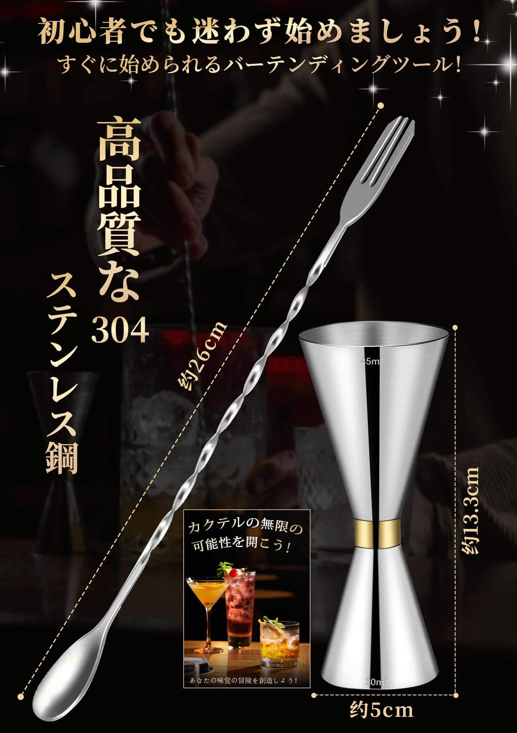 ジガーカップ 目盛り付き カクテルメジャー 30 45 バースプーン 26cm カクテルシェーカーセット メジャー メジャーカップ ウイスキー