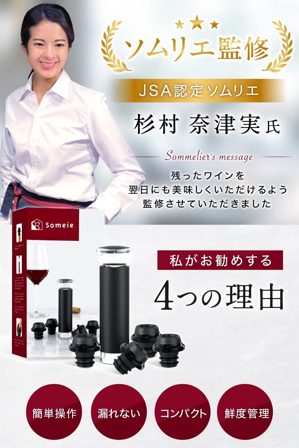 (ソメイエ) ワイン 栓 飲み残し翌日も美味しく【ソムリエ監修】 ストッパー 真空ポンプ キャップ4個セット 赤ワイン 白ワイン 酸化防止 真空保存 日付スケール
