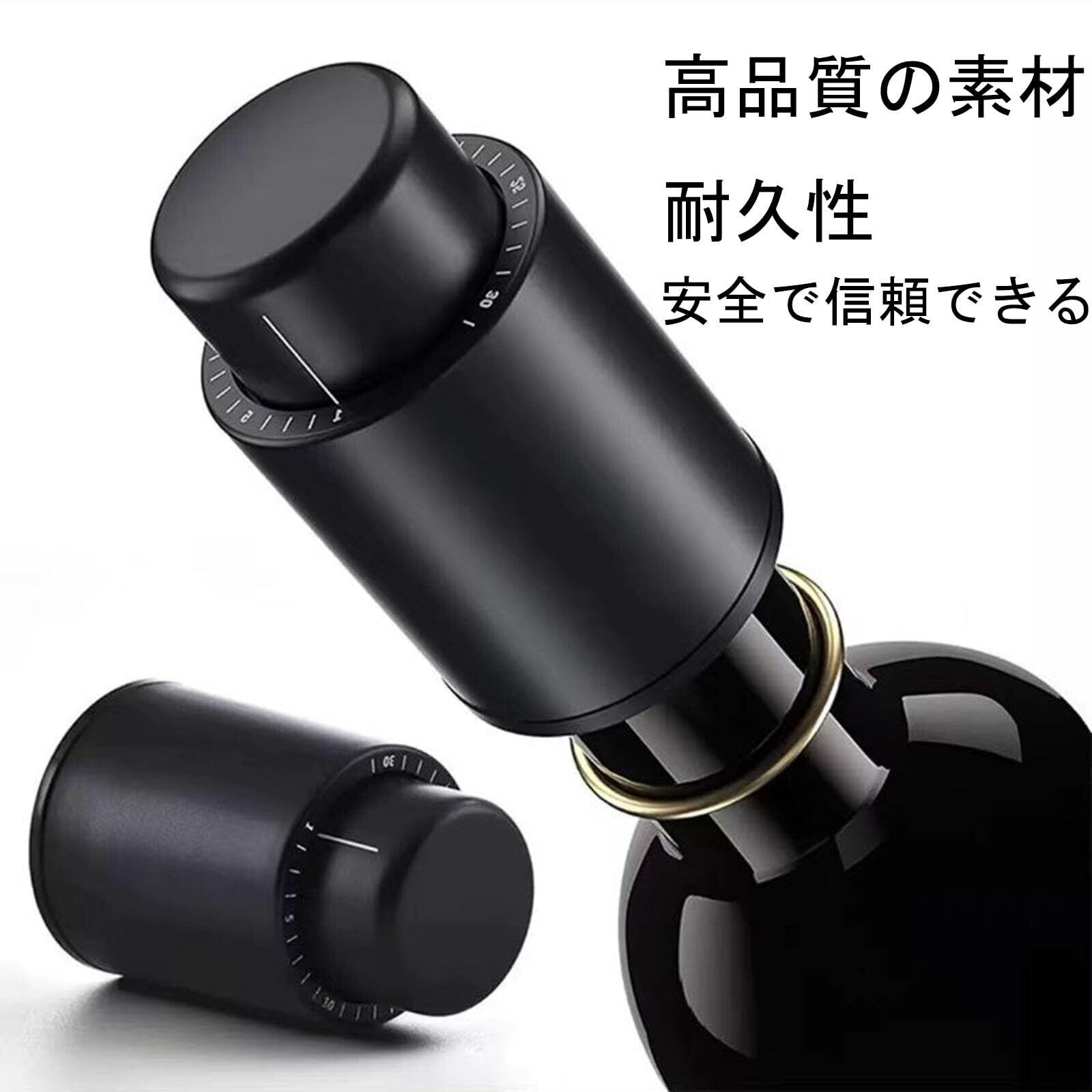 ワイン 栓 2個セットワインストッパーアンチオックス鮮度長くキープ 真空保存 酸化防止 キャップ 日付機能付記録 縦横で置ける 飲み会の便利グッズ クリスマス お誕生日 プレゼントにも最適 ブラックFrenflu