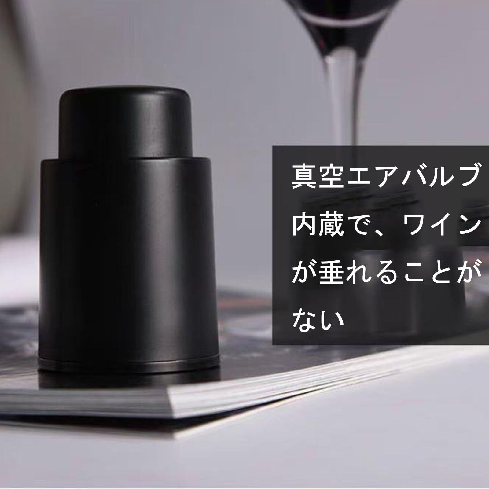 2個セットで便利な使い分け:2個セットなので、赤と白など異なるワインを同時に保存するのに最適。縦置き・横置き両対応で、冷蔵庫やワインラックでの収納も便利です。ブラックカラーのシックなデザインが、テーブルセッティングの雰囲気を損ないません。