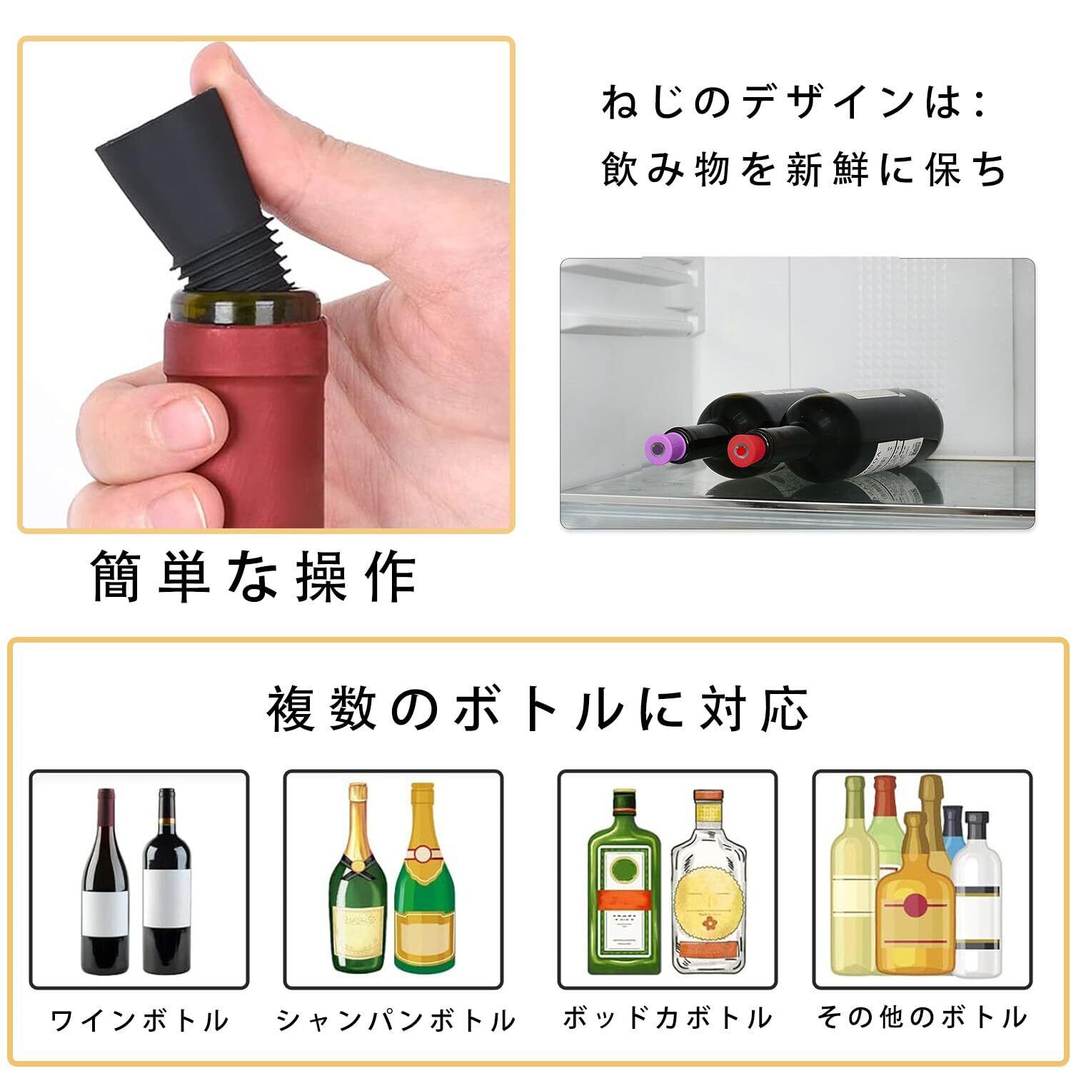 用途 :これらのワインボトルストッパーは、ピクニック、パーティー、キャンプ、屋内外のイベント中に未完成のワインやビールをカバーするのに最適で、数週間新鮮さを保ちます。