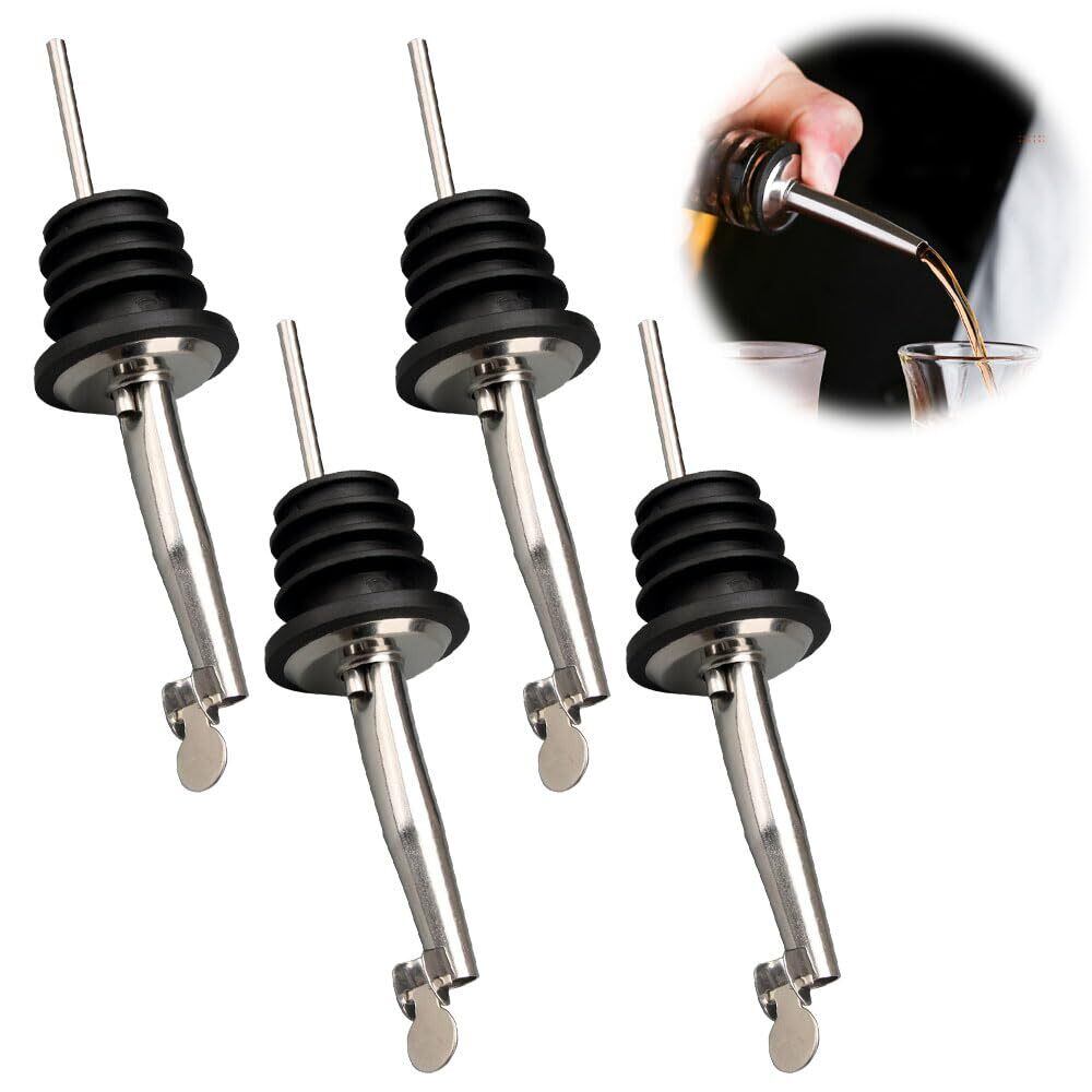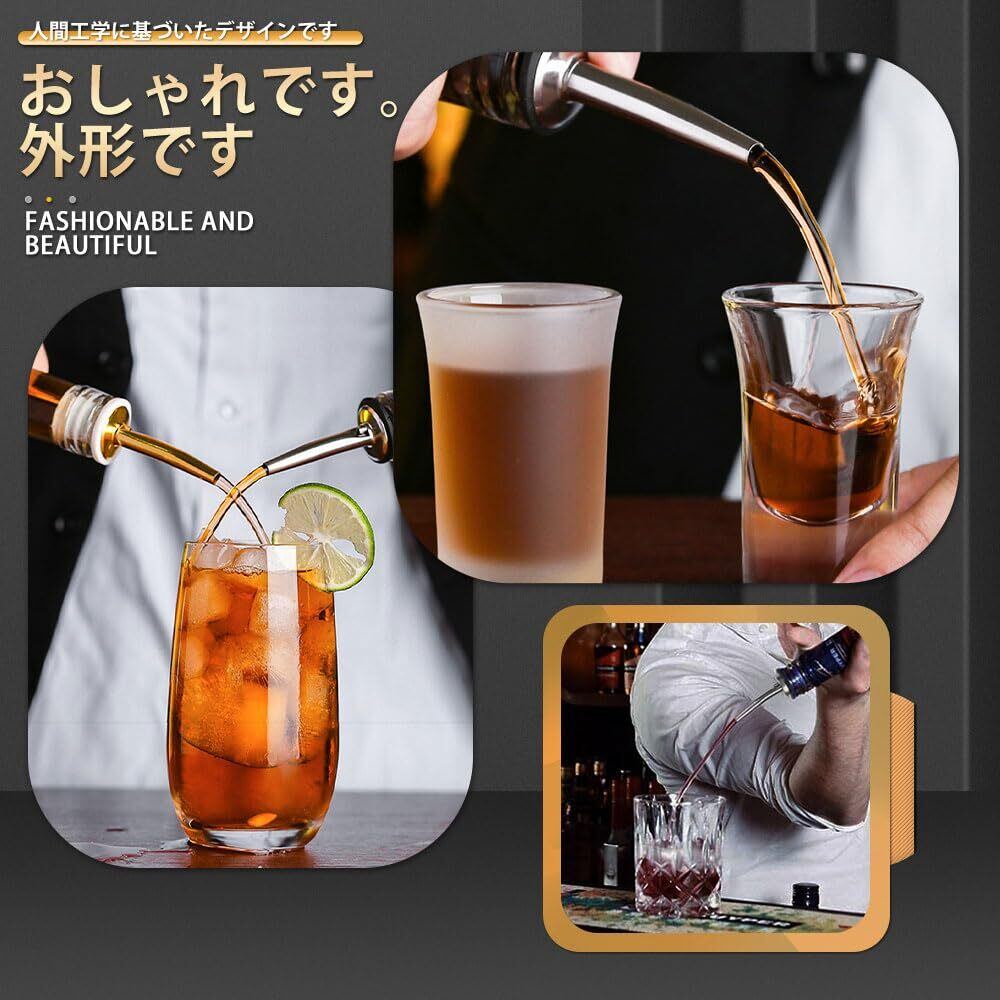 ボトル ポアラー ステンレス テーパー注ぎ口 ポアラー 液体 ディスペンサー 定量 適量 自動弁タイプ ヒンジ フタ付き オリーブオイル ワイン 酒 カクテル 4個セット