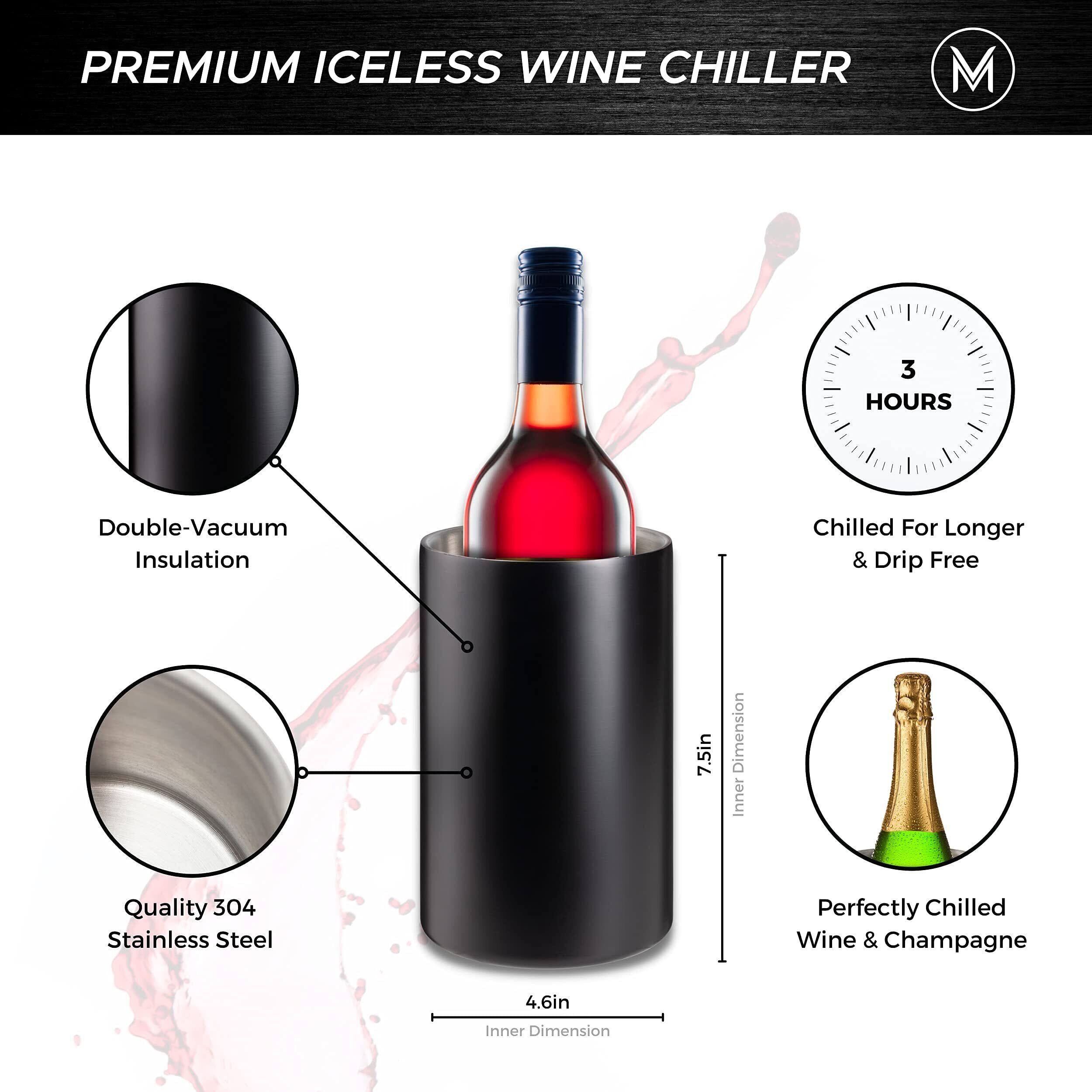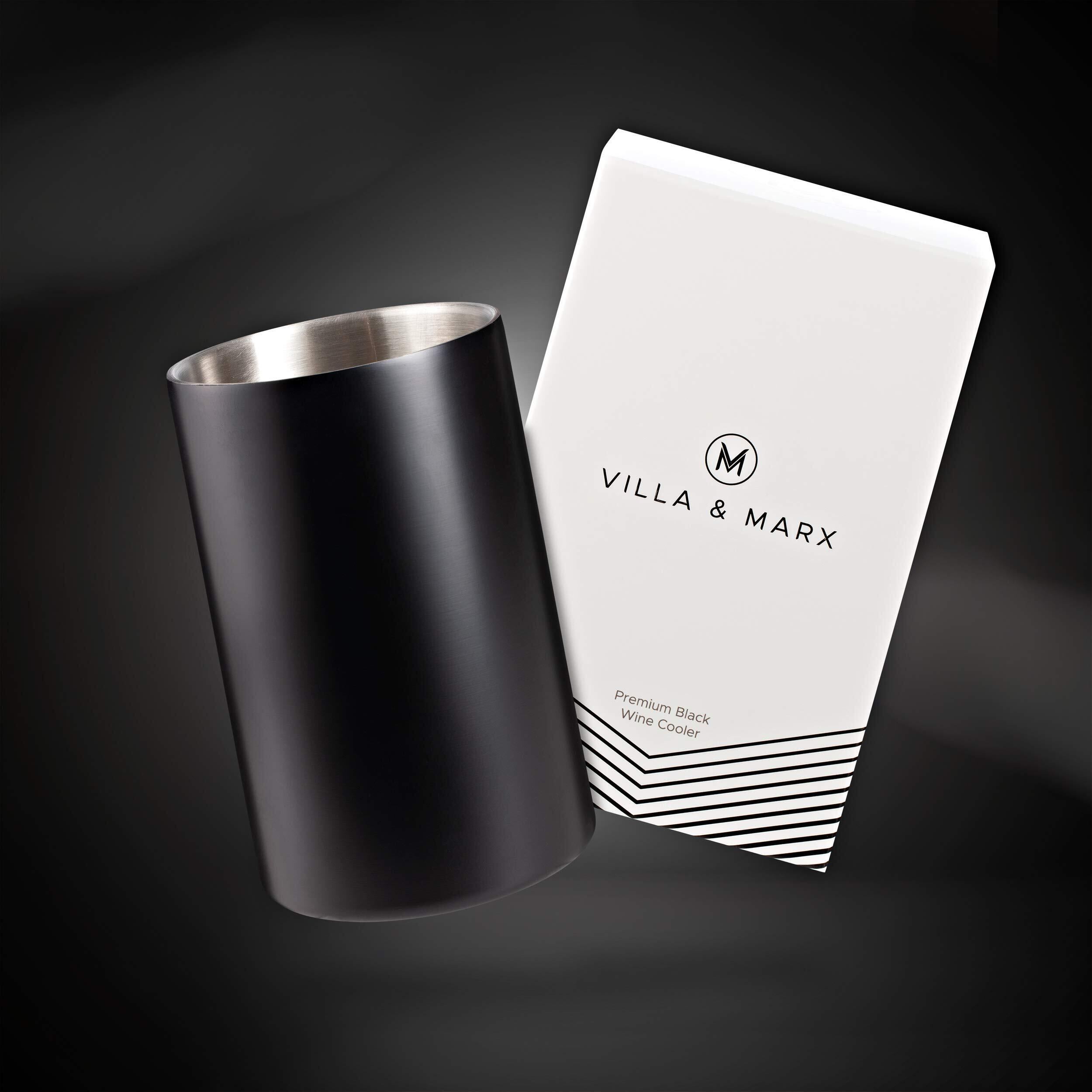Villa & Marx ワインチラー - エレガントなシャンパンバケツ プレミアムボックス付き - 断熱ワインボトルクーラー 氷なし - 二重壁ワインチラーバケツ すべてのボトルにフィットして冷却 (ブラック)