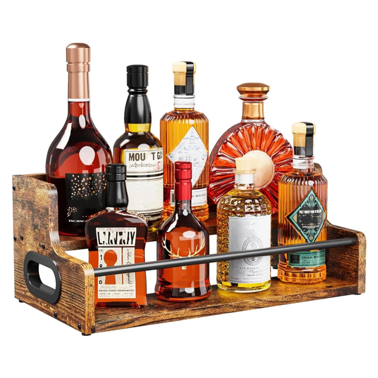 高品質 ウイスキー 棚 木製 金属 丈夫 防水 簡単手入れ ウイスキー ラック レトロ おしゃれ インテリア 調和 安全 ガードレール ハンドル付き 移動便利 安定収納 多機能 ボトルラック