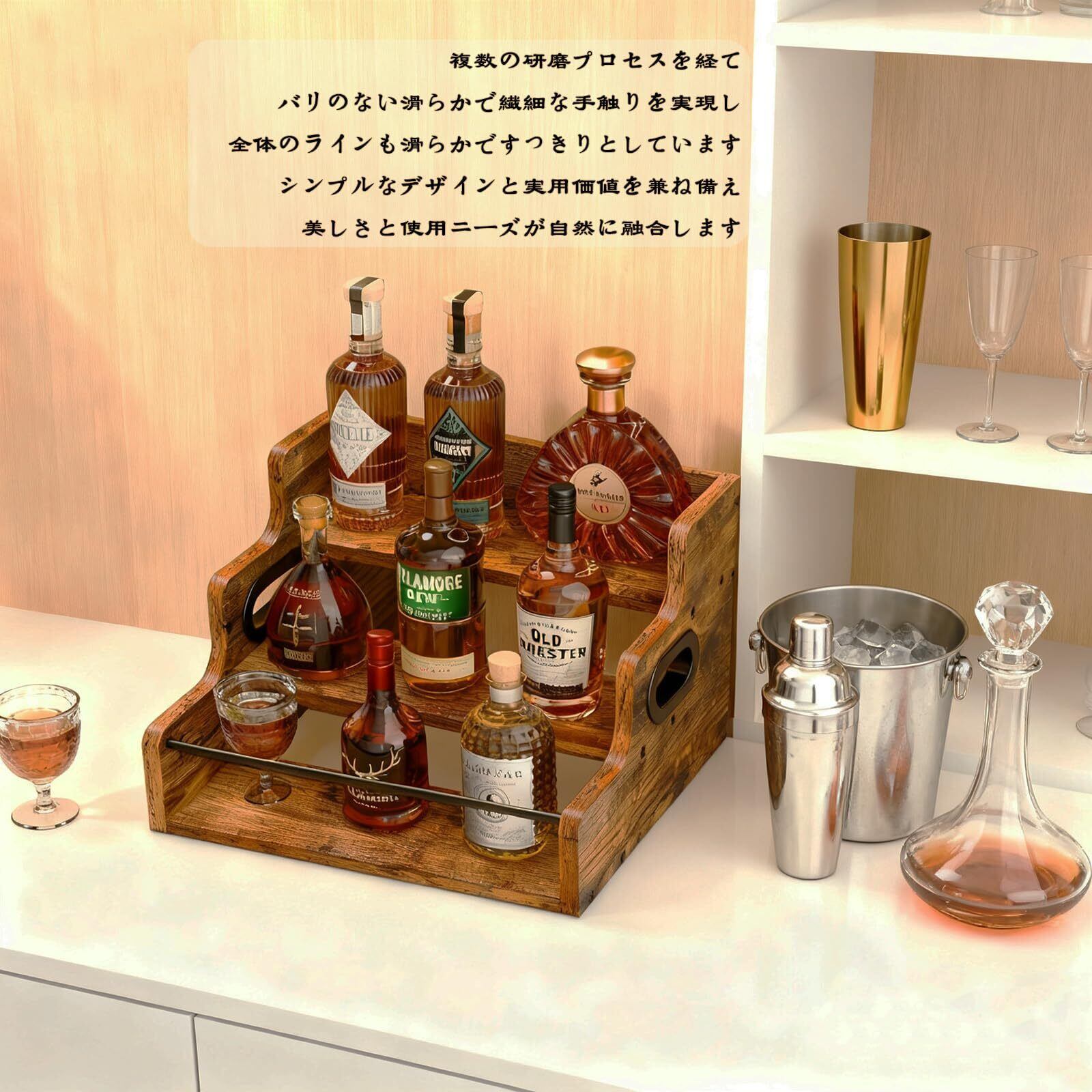 ワインラック 3段階 ディスプレイ棚 鉄製フレーム 木製仕切り カウンタートップ用ワインラック 移動式 収納整理 ボトルラック バーカウンター レストラン展示 スパイス棚 ギフト対応 40.6×30.5×23.5cm (ブラウン)