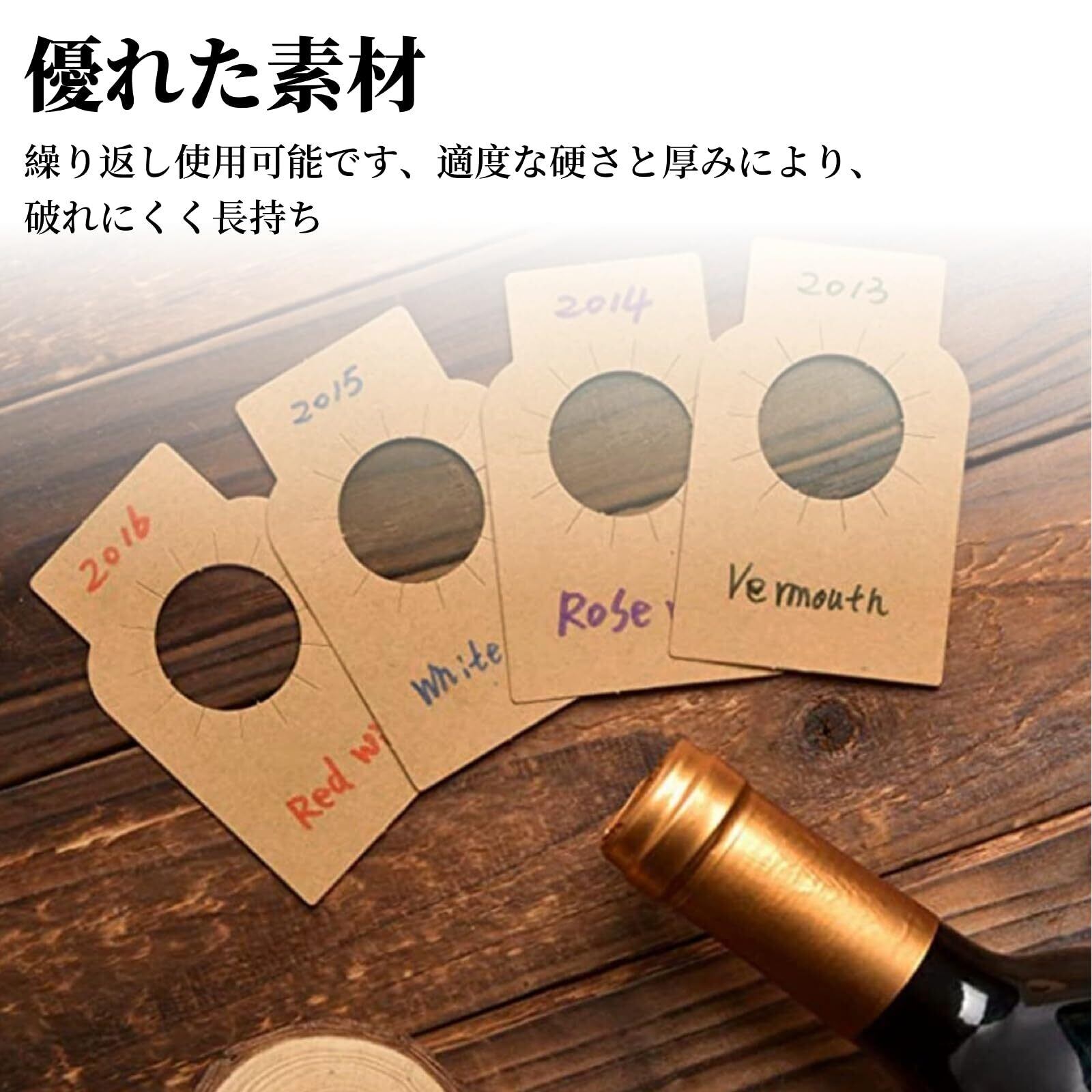 【100枚セットで大容量】 本製品には合計100枚のワインタグ含まれており、ワイン、ビール、シャンパン、ソーダ水や清涼飲料のボトルなど、さまざまなボトルにご利用いただけます。日々の使用や交換に十分な枚数なので、ご自身で使うのはもちろん、ご家族や友人とシェアするのにもぴったりです。