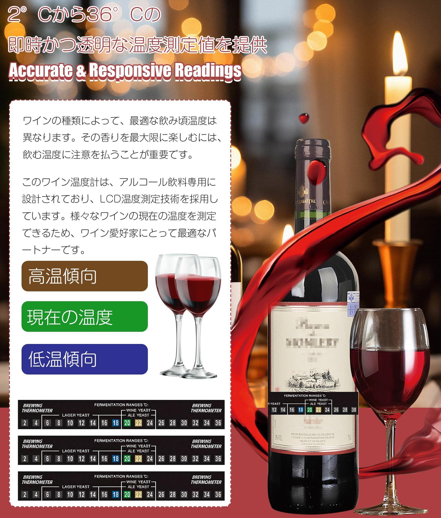 貼り付けデジタル温度計 5本セット 発酵槽 水温計 変色温度測定ストリ 利便性貼り付け 温度測定ステッカーツール 2°C~36°C 液晶温度ストリップステッカー プラスチック/ガラス/ステンレス製の発酵樽 家庭用 ワイン愛好家への贈り物