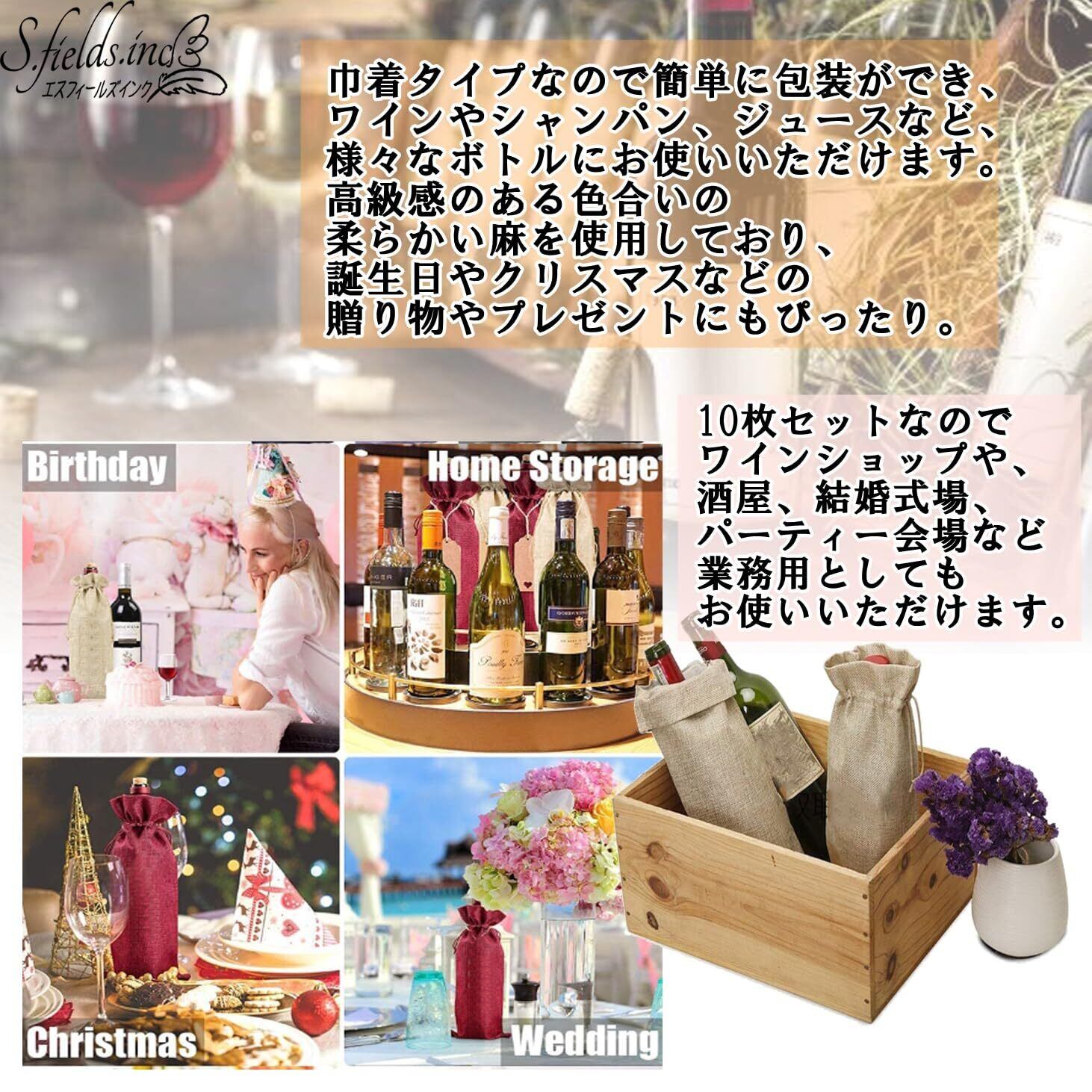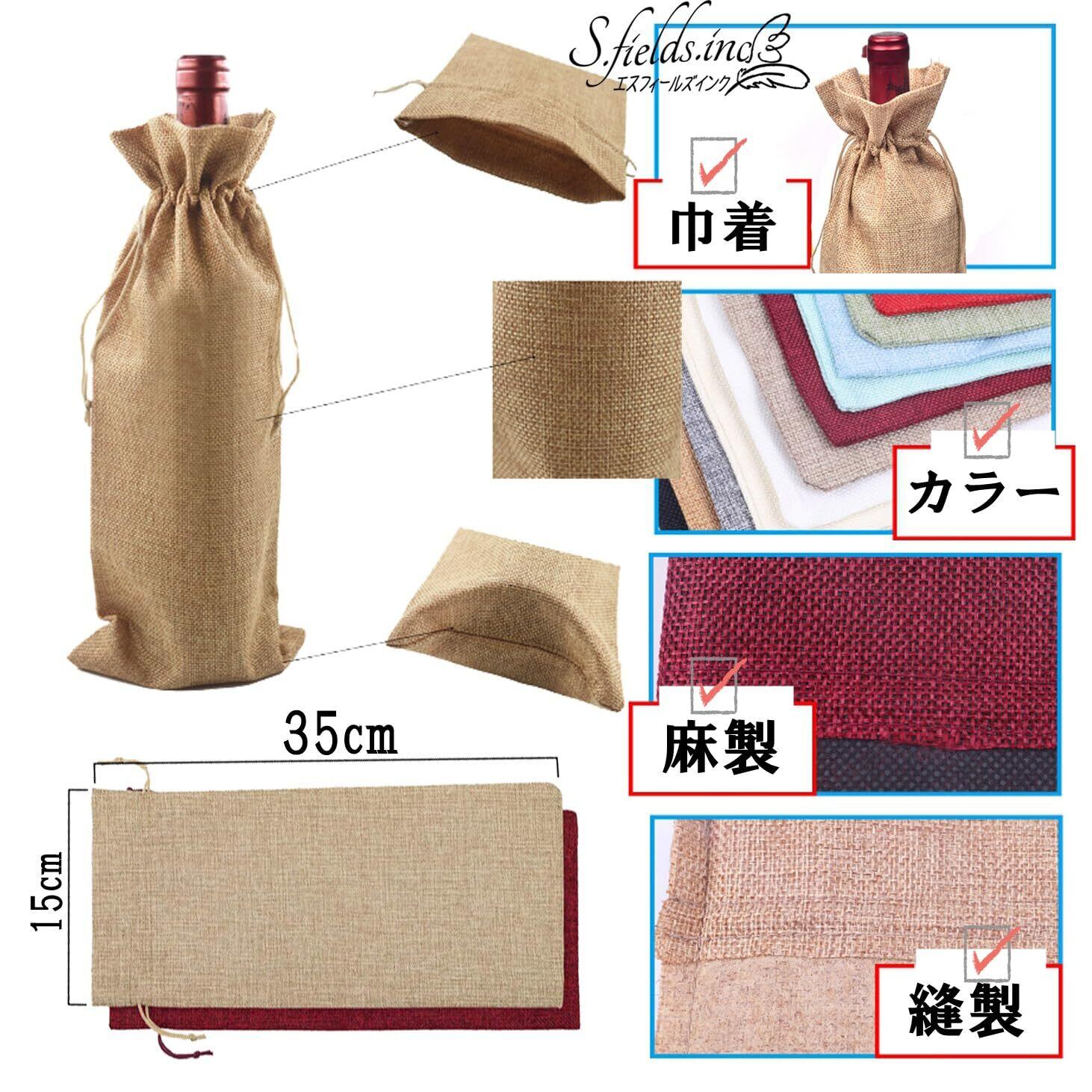 S.fields.inc ワイン袋 麻 10枚セット ワインボトルバッグ 巾着袋 包装袋 手提げ ラッピング袋 亜麻 (ベージュ)