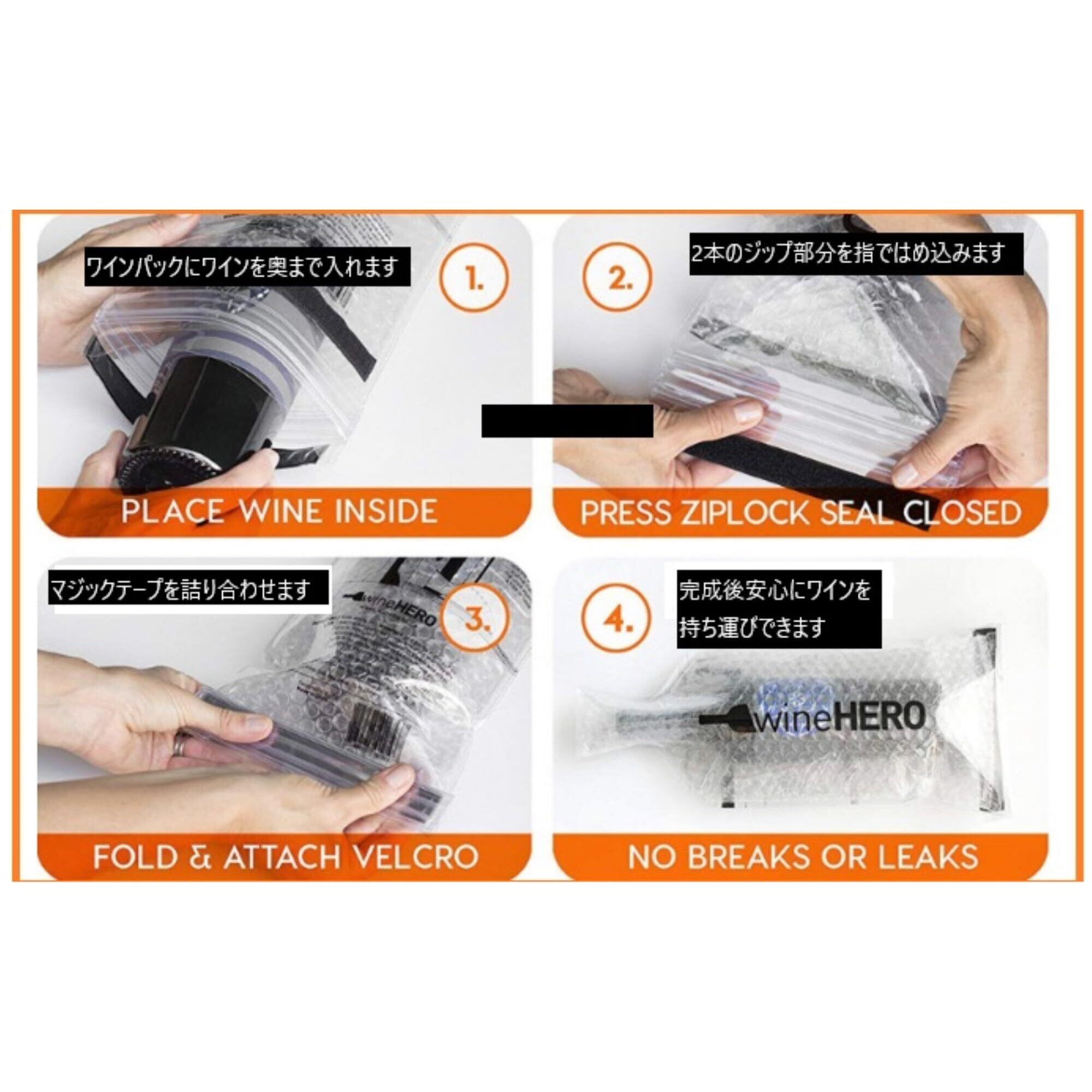 King's Arm ワインボトル保護バッグ 3重構造 再利用可能 持ち運び 漏れ防止 耐衝撃 ラッピング 4枚セット (B タイプ)