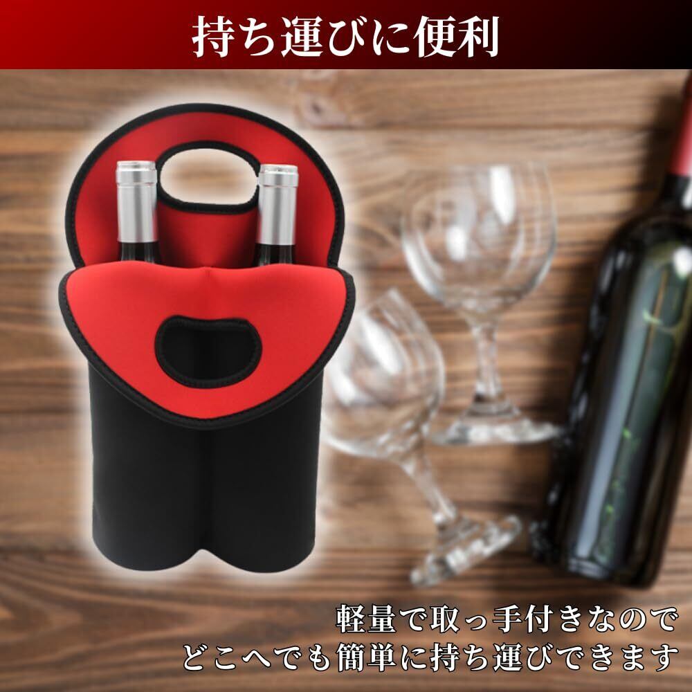 【2本同時に持ち運べる便利なワインバッグ】軽量でポータブルなデザインを採用したこのボトルバッグは750ml~1Lサイズのボトルを2本収納できる実用的なアイテムです。ピクニックやパーティーアウトドアでの集まりなどどこへでも簡単に持ち運べるため外出先でワインを楽しむ時間をより豊かにします。取っ手付きの設計で持ち運びや手渡しにも便利で使いやすく日常使いからギフト用途まで幅広く活躍します。
