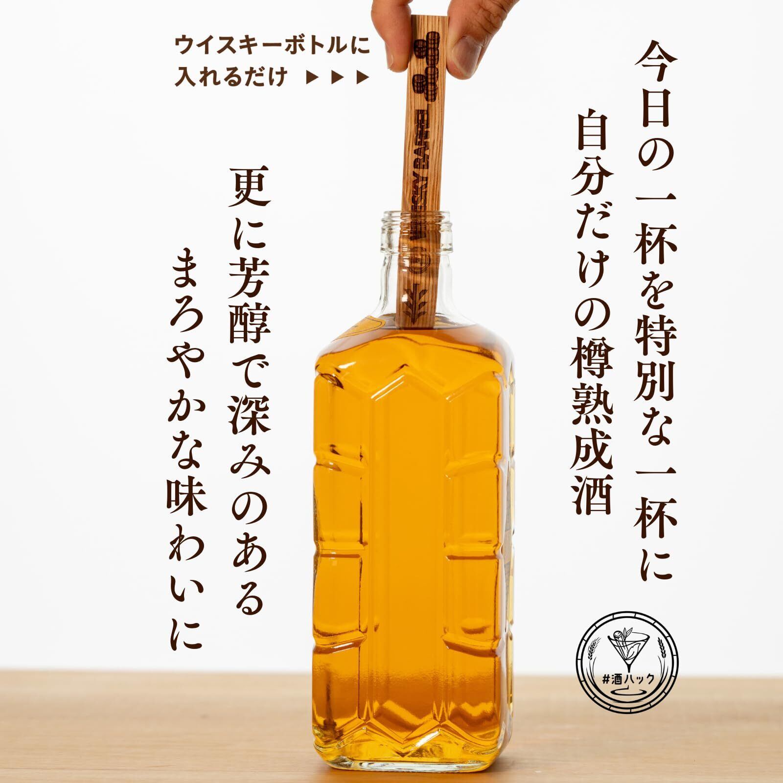 銘木スティックをお酒のボトルにそのまま入れて、なんと数日待つだけで、いつものお酒が樽で熟成したようなまろやかさと豊かな香りに!お酒好きが開発した、お酒好きなあなたのためのキットです。