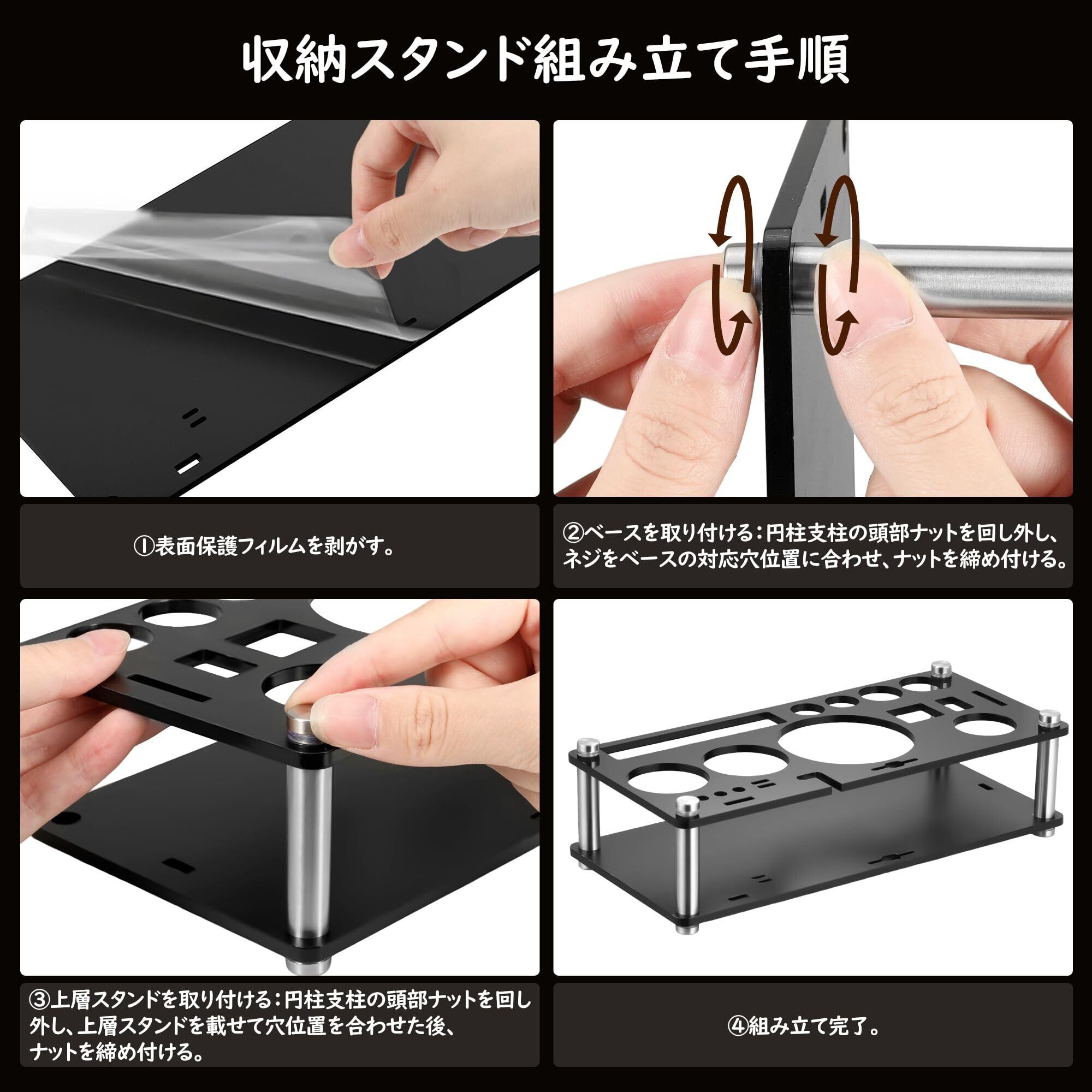「美しく収納できる専用スタンド」全てのバーツールをコンパクトに収納できるアクリル製スタンドが付属してあり、ツールをひと目で見つけられる設計で、実用性はもちろん、インテリアとしても美しく、キッチンやホームバーに映えるモダンなデザインです。省スペースで整理整頓ができ、片付けも簡単で行えます。