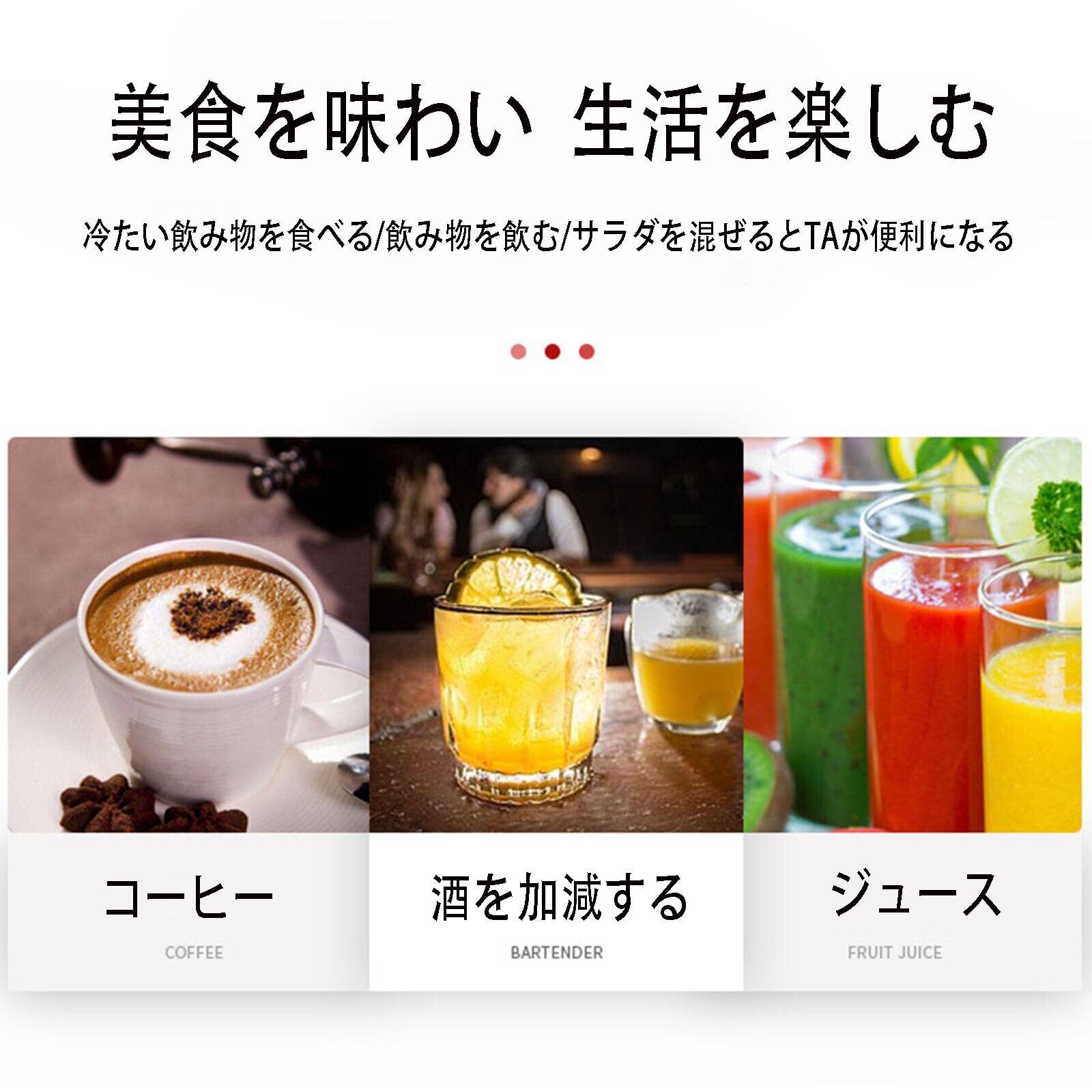 【適用場面】バー、ホーム、レストラン、コーヒー屋さん、飲料店、パーティー用に最適の長いスプーン。それを使っていろいろな食材や調味料をかき混ぜたり、氷を取ったり、ミルクティーやデザート、コーヒーなどを作ったりすることができます。