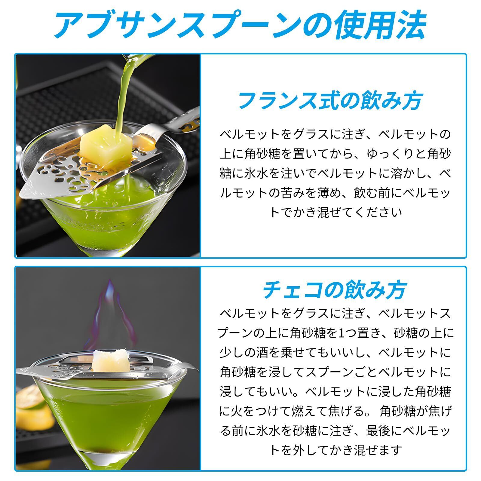 【使い方】氷水を1滴ずつゆっくり砂糖に注いでから、お酒に流します。酒の苦味を相殺するために、砂糖を1杯の酒に溶解するために使用されます。バー、ホーム、カフェ、ホームパーティーに適しています。