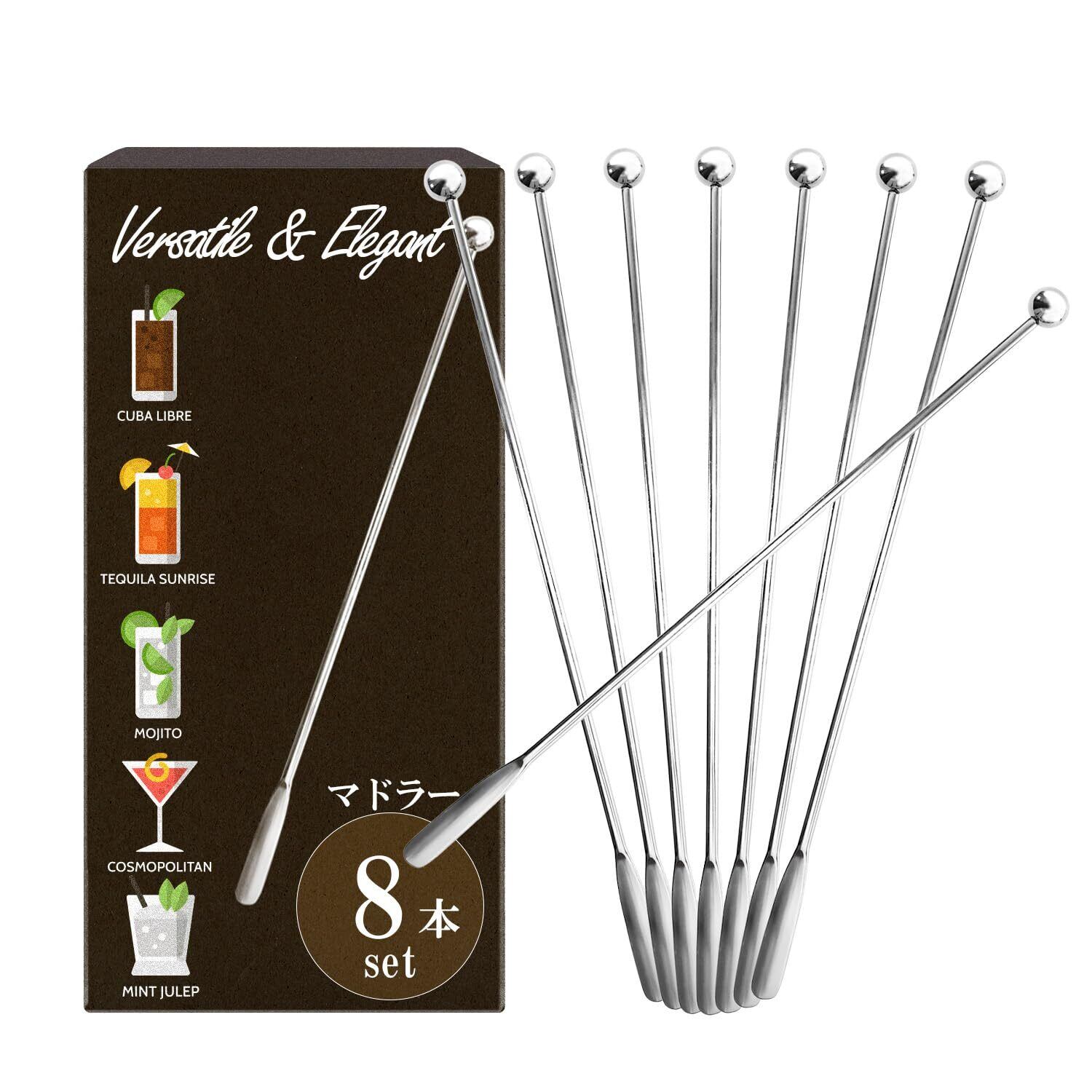 マドラー ステンレス (8本セット) 【現役バーテンダー監修】【 全長19㎝の304ステンレス製 マドラ ! 】[Resbett]
