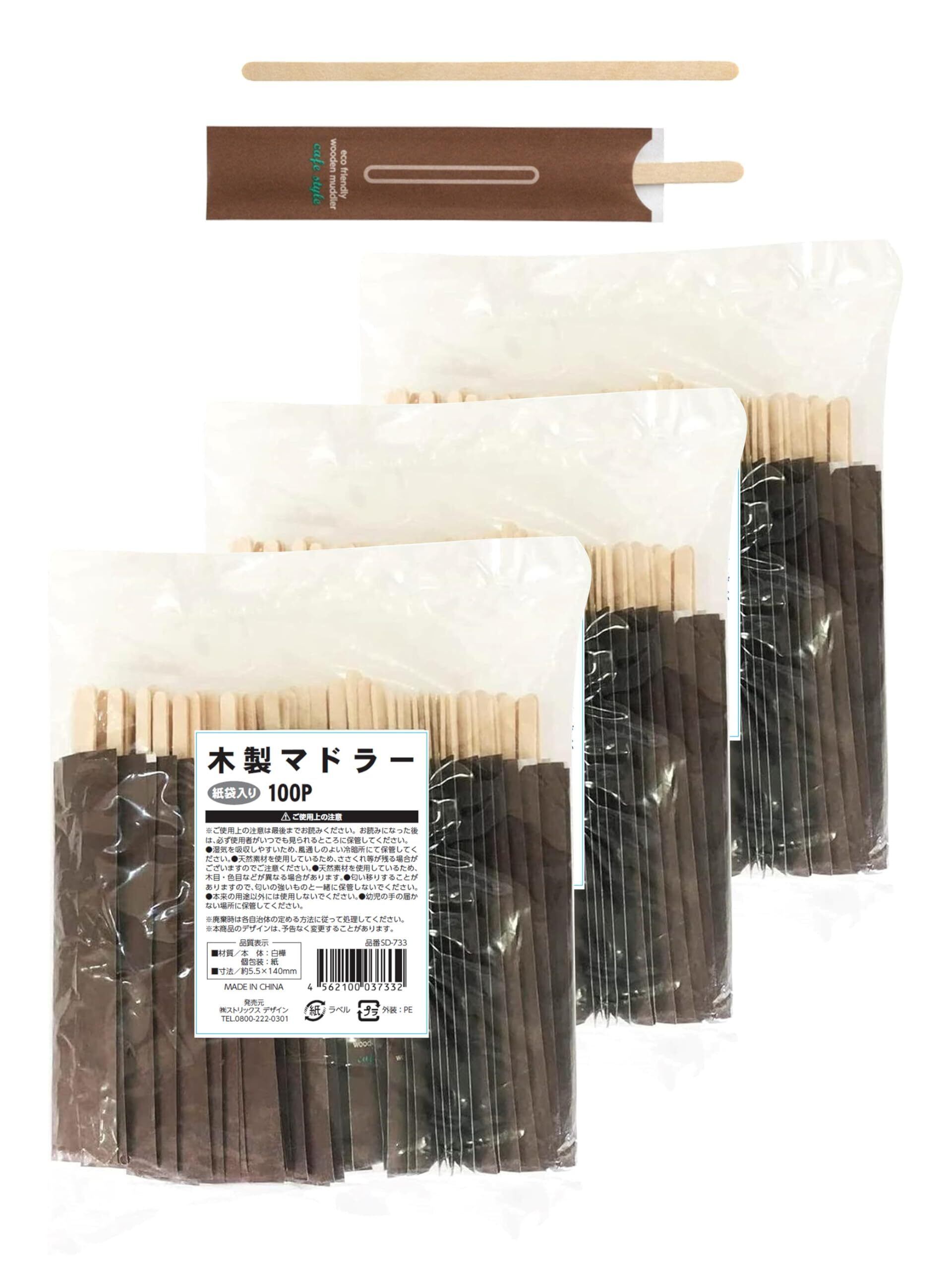 ストリックスデザイン 森にやさしい 木製 マドラー 紙袋入り 300本 (100本×3セット) 天然木 14cm 個包装 使い捨て アウトドア 白樺 カフェ おもてなし SD‐733 【 限定】