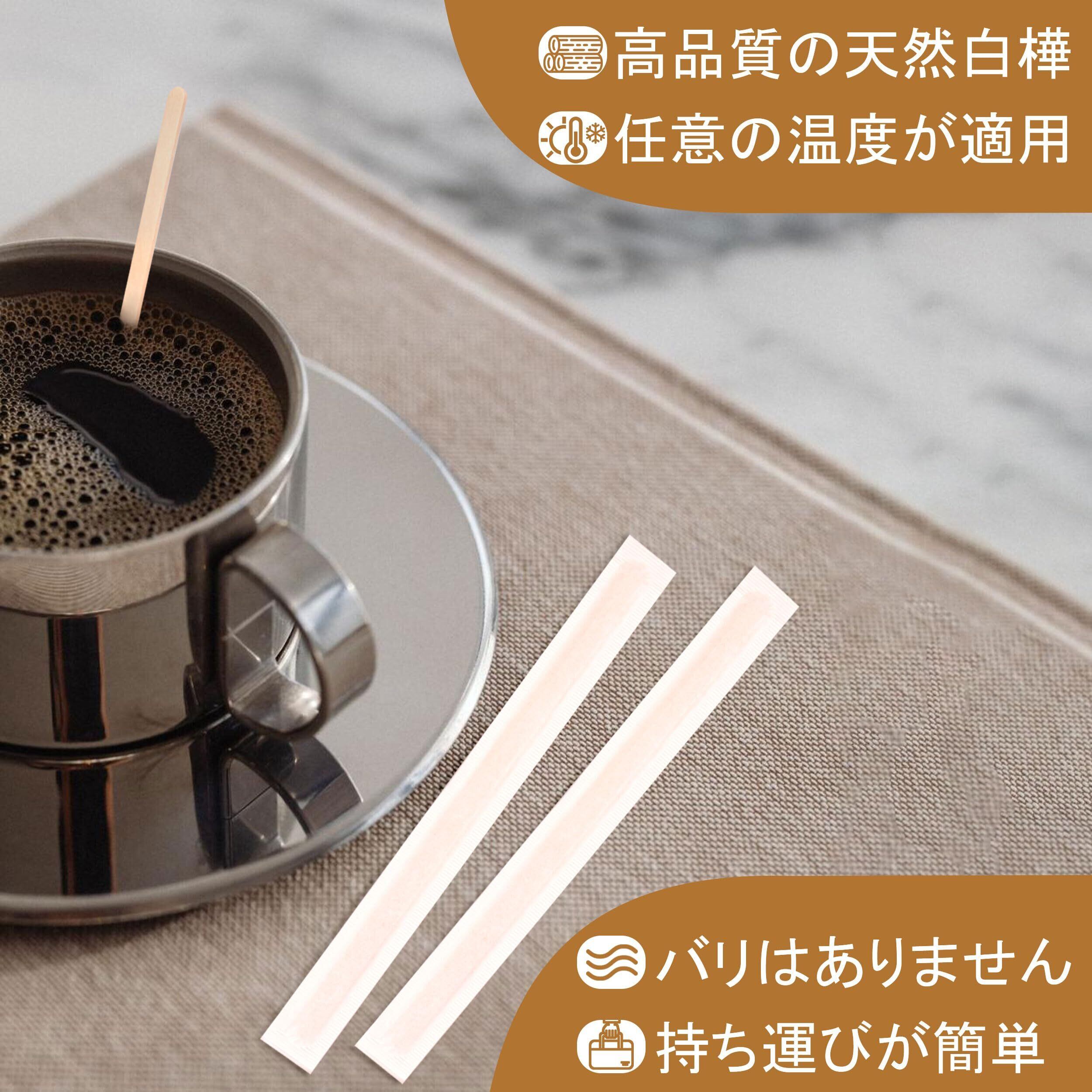 木製マドラー 19cm 1000本入り 紙包装 コーヒー&ティースティック 使い捨て 業務用 個包装 ハンドメイド・DIY飲料用 ウッドマドラー