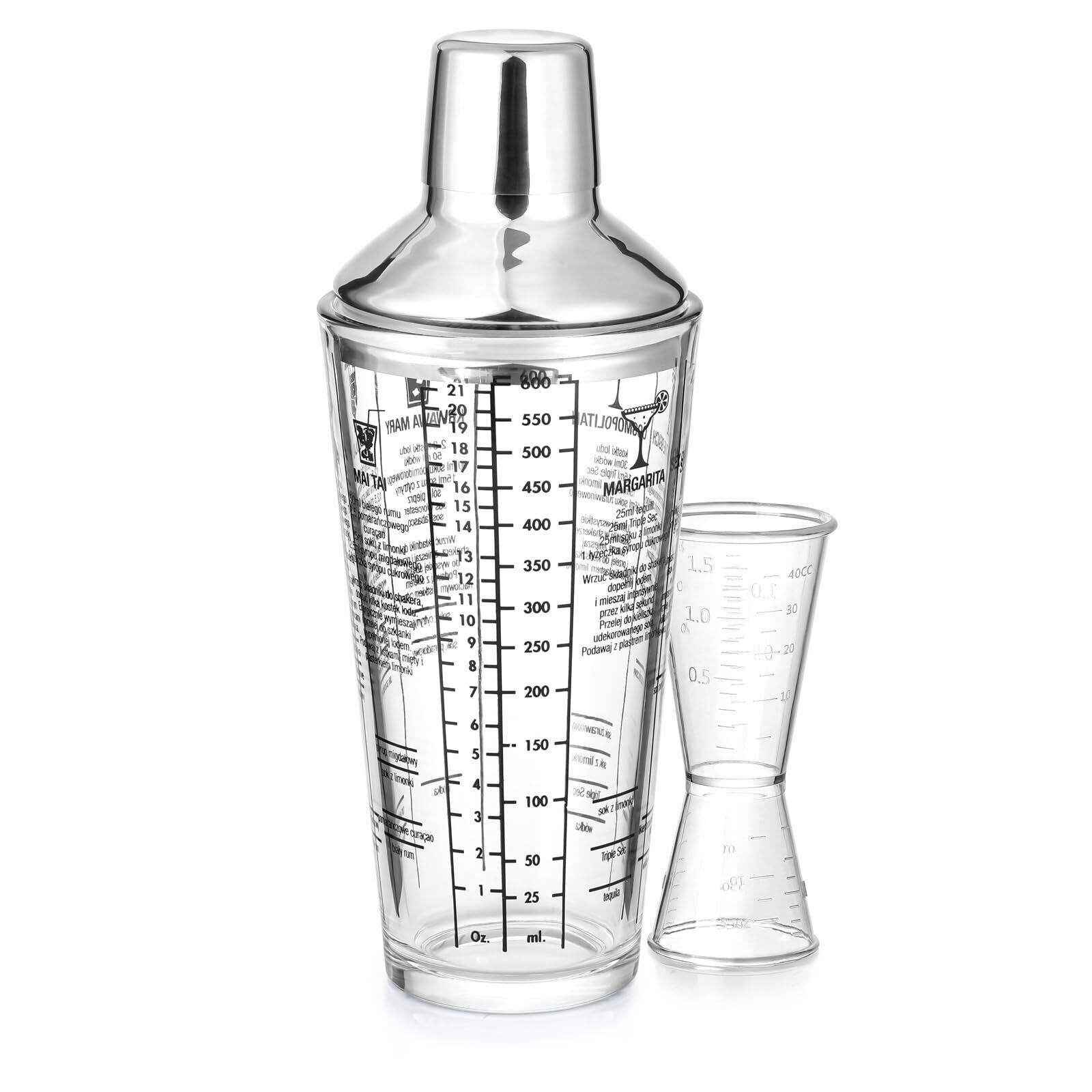 便利な目盛り&レシピ付き:グラスにオンス(oz)とミリリットル(ml)の目盛りが刻まれ、正確な計量が簡単!人気カクテルレシピも印刷されているので、初心者でもすぐにプロ級のカクテルを楽しめます。自宅で本格的なバータイムを!