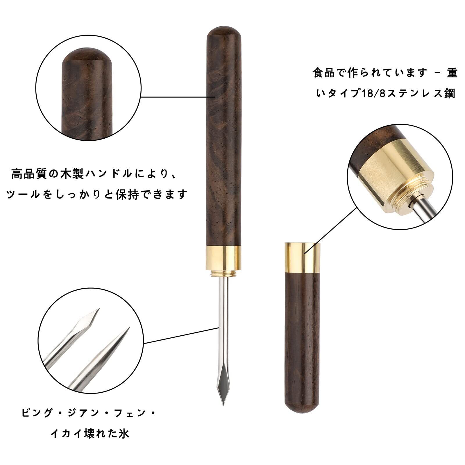 アイスピック 3サイズセット ステンレス刃 木製ハンドル 保護キャップ付き アウトドア・家庭用・レストラン用(黒木)