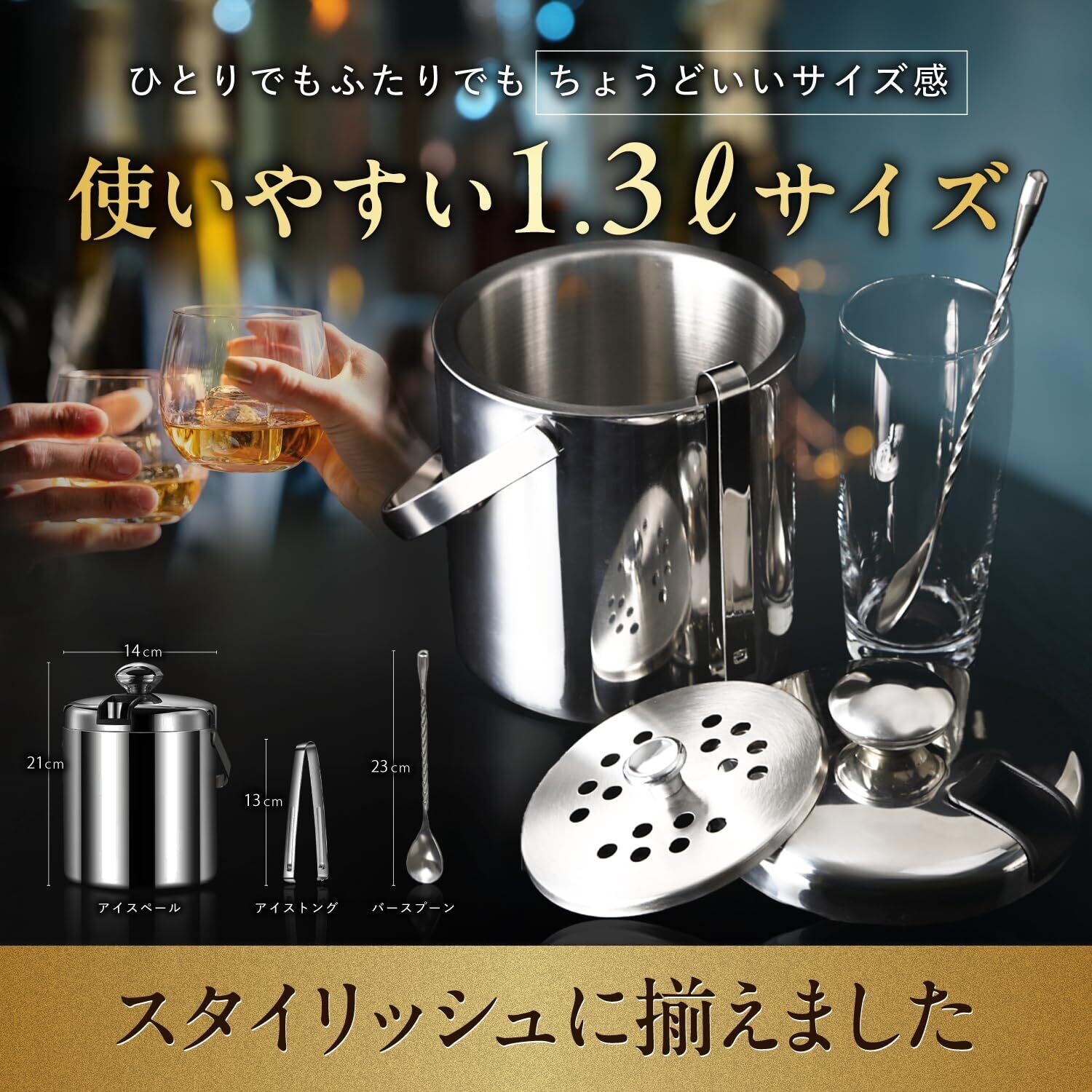 ALONZA アイスペール 氷入れ アイスボックス 氷 容器 ステンレス製 1.3Lサイズ
