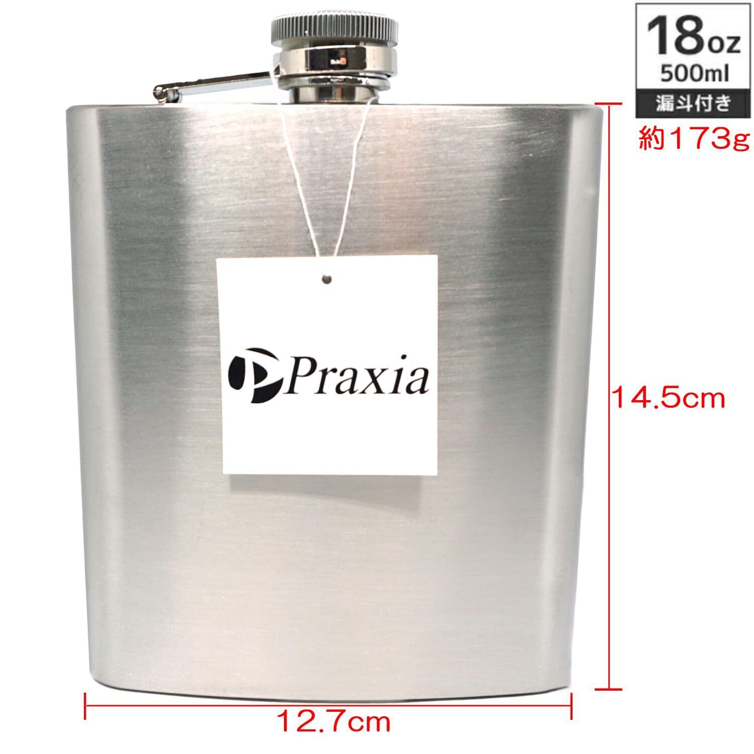 Praxia スキットル フラスコ ウイスキーボトル 500ml 18オンス 軽量 アウトドア 漏斗 キャリングポーチ クロス 付属