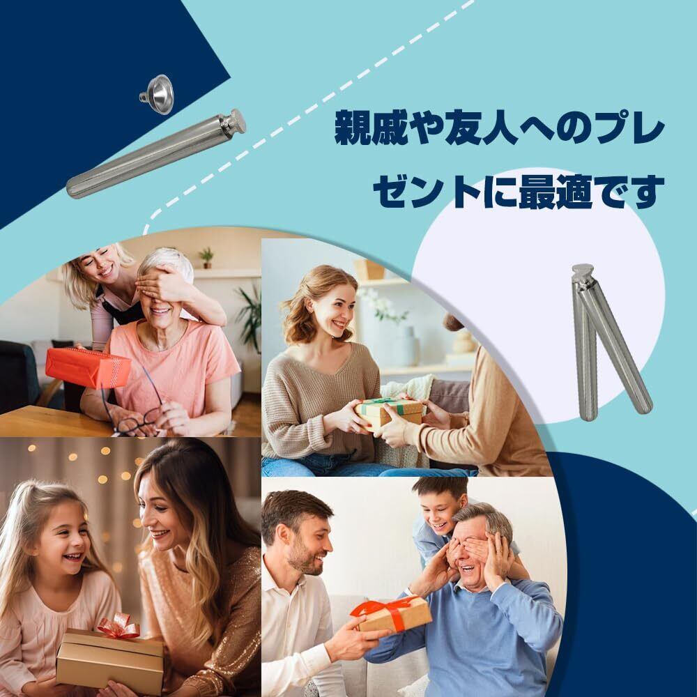 2.実用的な付属品と便利な操作:ボトルには特に小型で実用的な漏斗が装備されており、ユーザーがウイスキー、日本酒などさまざまなタイプの酒液を簡単に注ぎ込むことができ、注ぐ時にスパッタしたり無駄にしたりしないようにしている。コンパクトなサイズ(2オンス、約60ミリリットルの液体を収容可能)で、ポケットに隠して持ち歩くのに最適です。