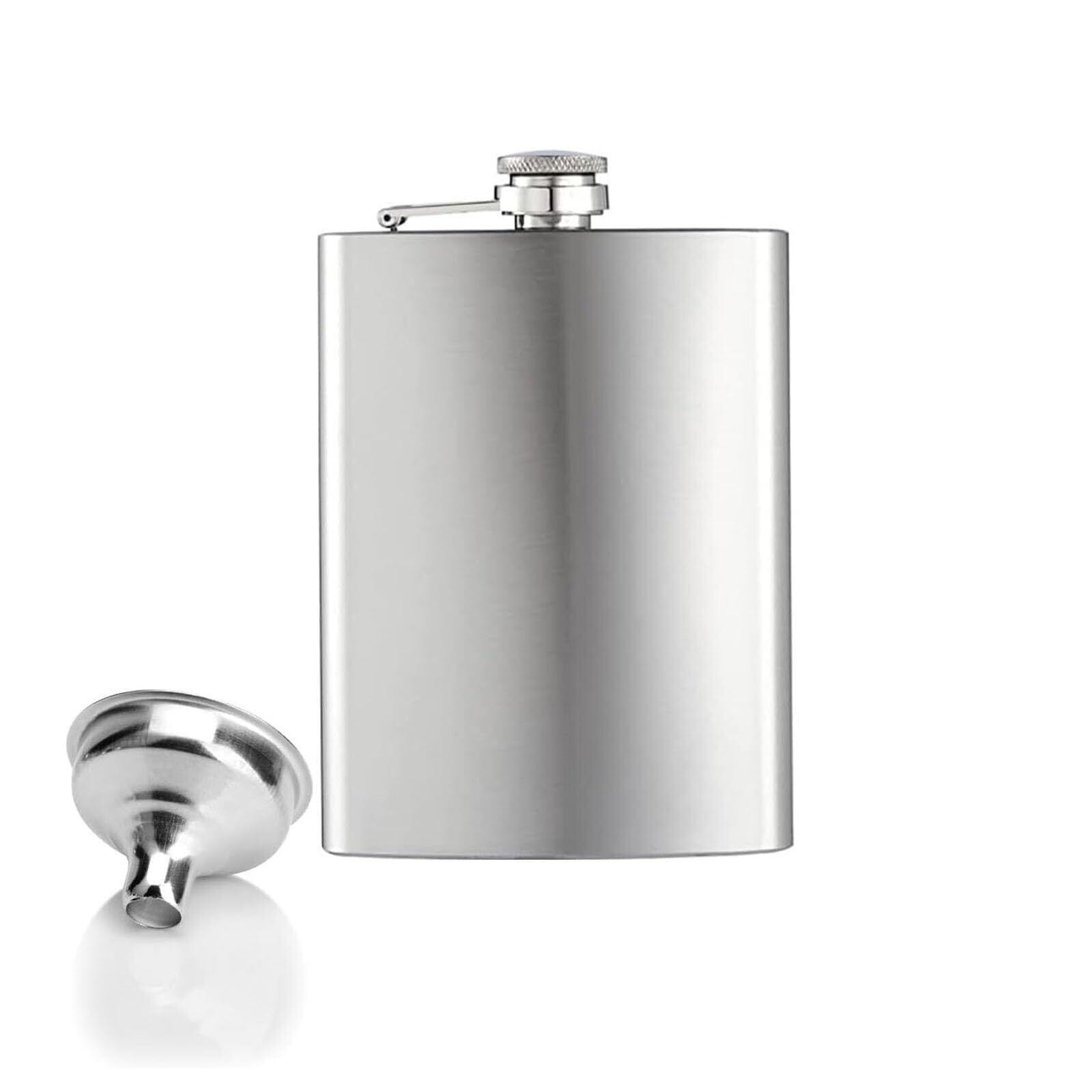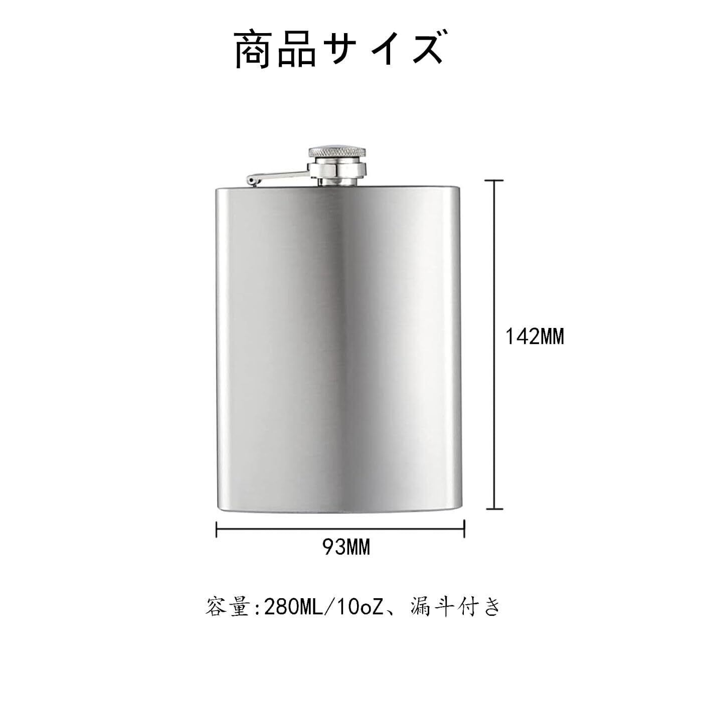 スキットル ヒップフラスコ 280ml/10oz 大容量 携帯便利 ステンレス製 漏斗付き (シルバー)
