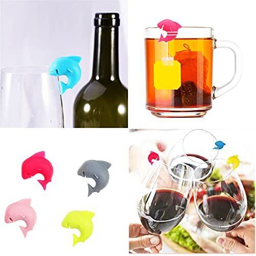 -ワイングラスレコグナイザー、小さくてかわいい、再利用可能。さまざまな色がワインと飲料のカップ、ボトル、缶を区別します。