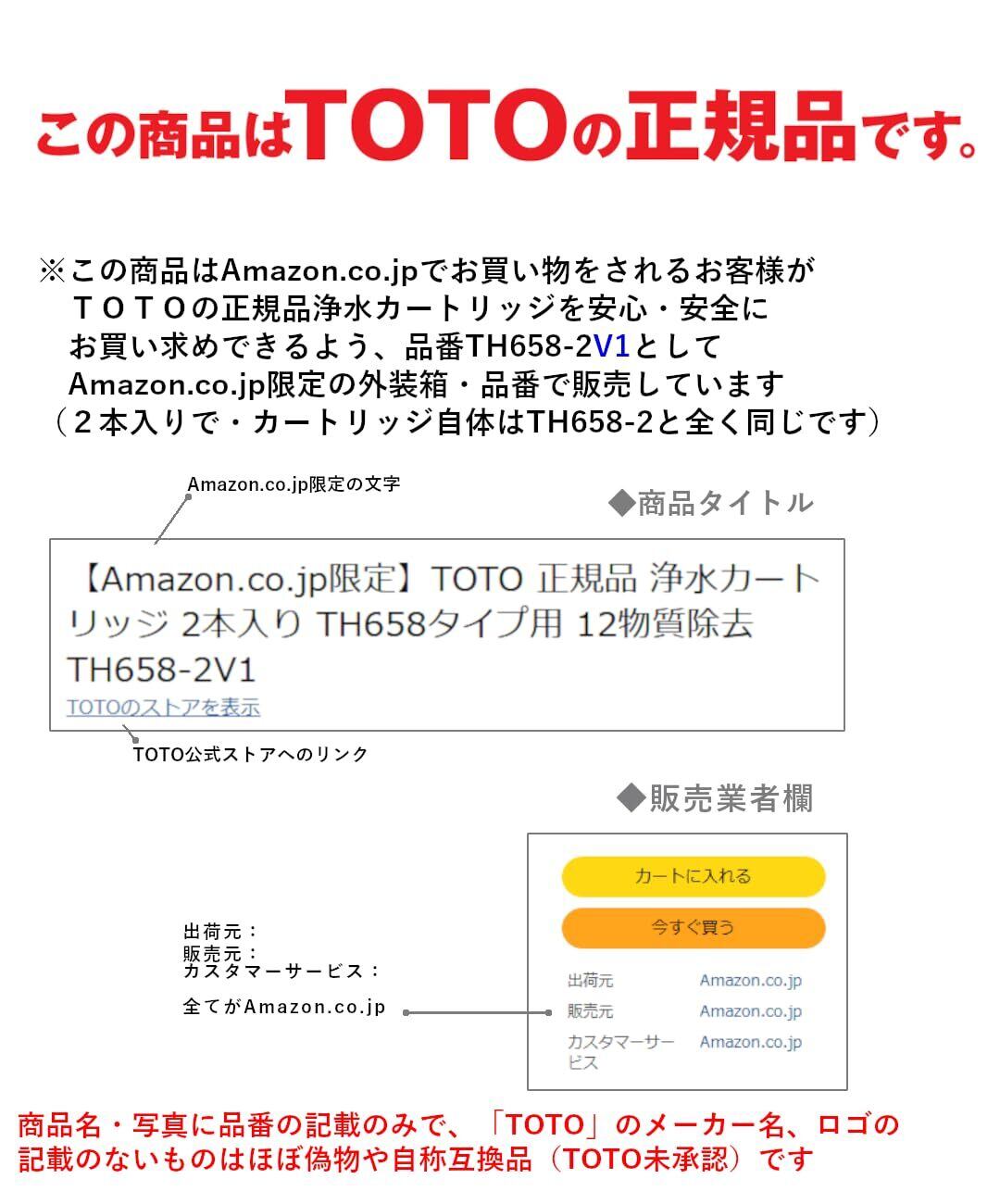 にて販売されるTOTOの正規品浄水カートリッジ、性能はTH658-2同等。2本入りセットのTOTO正規品としてパッケージを一新。品番:TH658-2V1