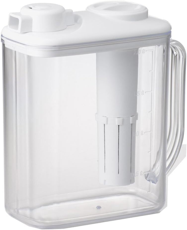 自宅の水道水が素早くミネラル還元水に。塩素除去浄水機能付き 水道水をポットに注ぐだけで、残留塩素やカルキ臭等の不純物を分解・除去し、さらに酸化された水を還元。マイナスイオン水(還元水)になる。酸化還元電位200mV以下の天然水にも優る水(還元水)になる。 (※参考/水道水:400~700mV、市販ミネラルウォーター:250~400mV) 【ベストイオンの特徴】 原生の植物などから抽出した「生物ミネラル」が水道水の塩素や不純物を分解・除去し、さらに酸化した(活性酸素の多い)水を還元して生体水に近づける。酸化現象(活性酸素)を抑え身体に良いマイナスイオン水(還元水)をつくる。 【用途はいろいろ】 飲料水、水分補給、肌水として、お茶やコーヒー、お料理に、赤ちゃんのミルク作りのお湯に、ペット水に、植物の補水に。 冷蔵庫のドアポケットにスッキリ収納できるスリムサイズ 誰でも簡単、約4分で注水完了 カートリッジは、1日4リットルの使用で約1年使用可能。1リットル当たり約6円と経済的 使用上の注意 水道水の飲料基準に適した水をご使用ください。 ご使用前、使用中のポット内に活性炭や鉱石の微粒子、粉末が出ていることがあります。水道水で洗い流してからご使用ください。 ベストイオンは常に清潔に保ち、週に一度程度洗浄してください。 カートリッジの交換時期の目安は、使用水量、水質、水圧により異なります。(取り替え用カートリッジは別売となります) 給水後はお早めにご使用ください。 ご使用の前に必ず取扱説明書をお読みください。