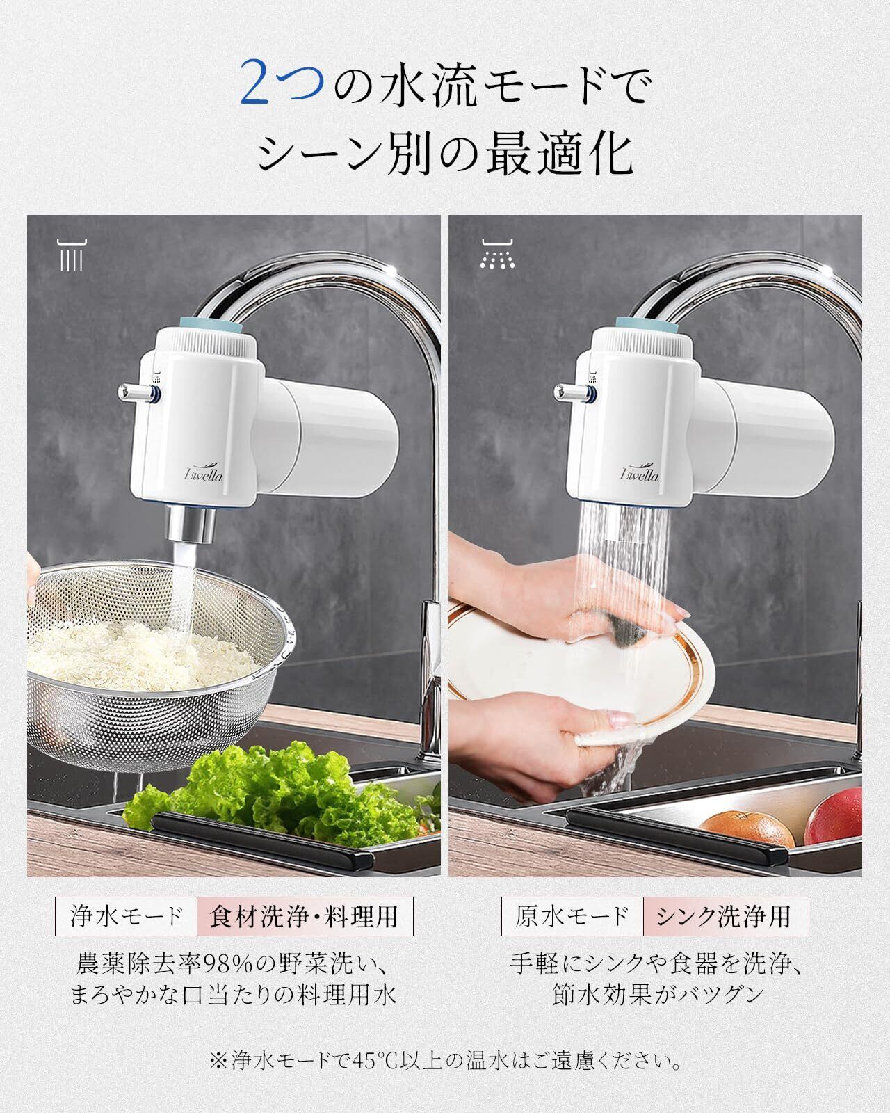 浄水器 蛇口直結型 マイクロバブル・ナノバブル搭載 ウルトラファインバブル 蛇口 塩素除去 24物質除去 高水圧&最大30%節水 2000L長寿命 Livella 蛇口取付型浄水器