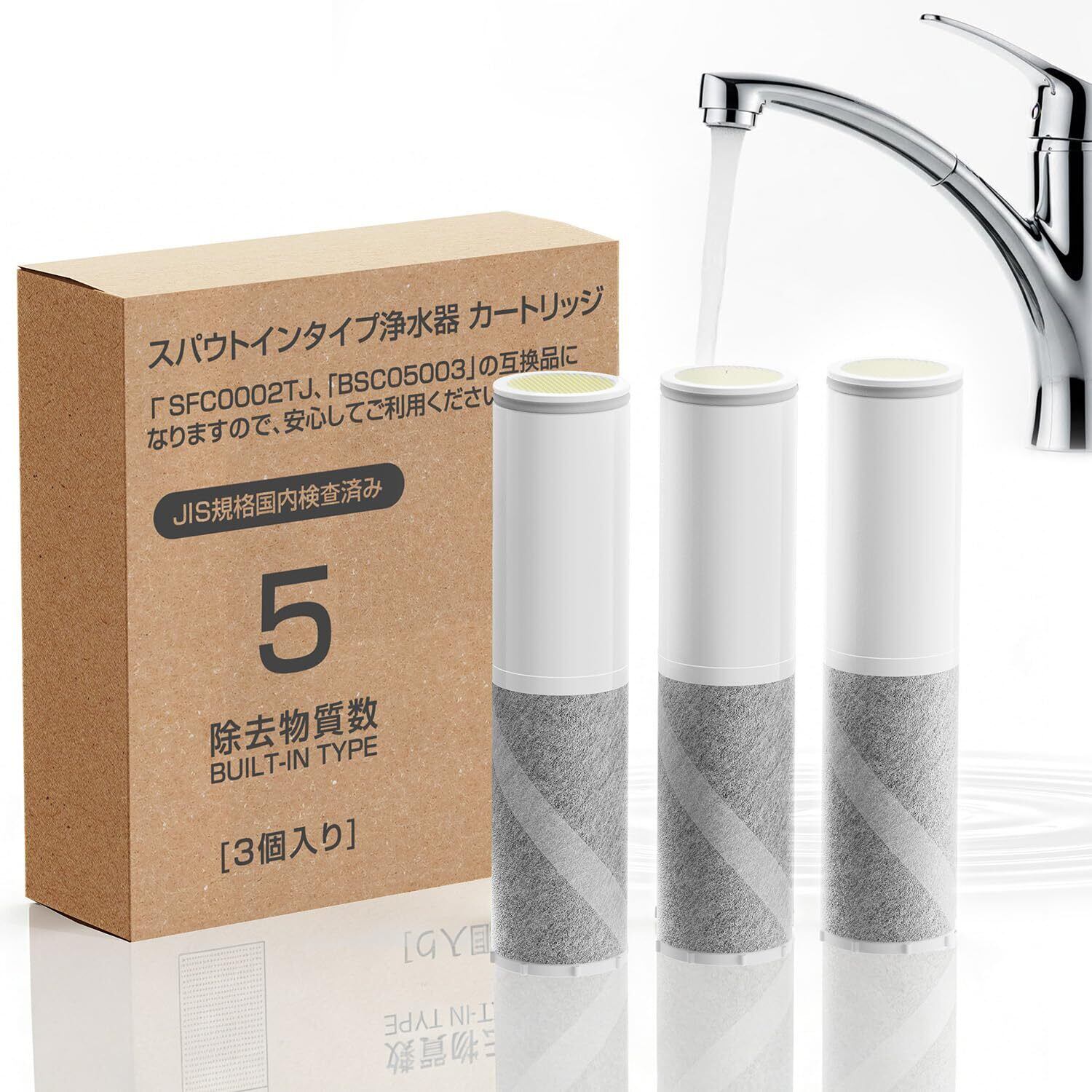 【正規品】SFC0002T カートリッジ クリンスイ対応【JIS規格日本検査済・高性能】交換用カートリッジ 5項目除去(SFC0002TTS ZSRJT002R12BC FP1025 PZ871-3同等品)スパウトインタイプ 水栓一体型浄水器用 3本セット