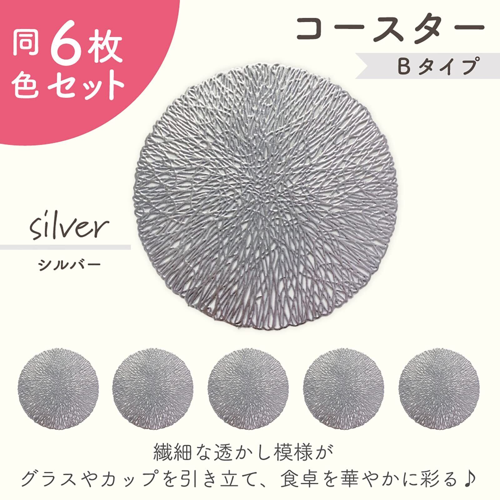 [GJTr] コースター 6枚セット コップ敷き コップ受け グラスマット PVC サークル (B シルバー)